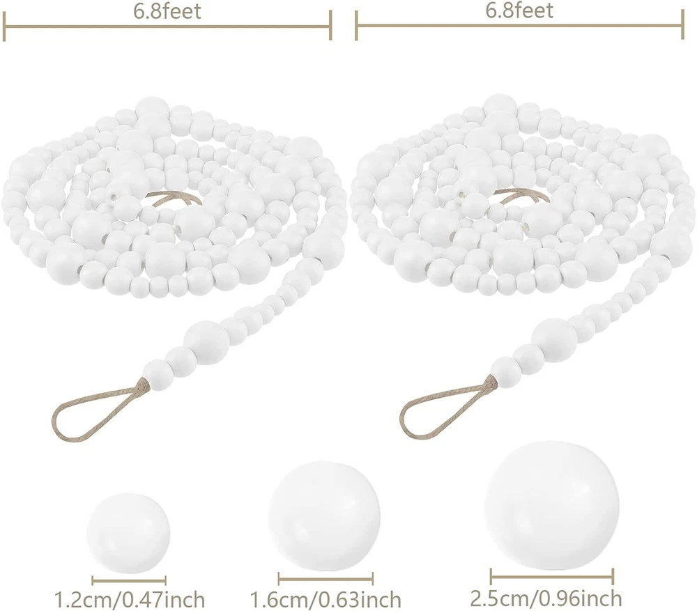 27' Christmas Wooden Garland Beads Condition: New Color: White Features 13.6 Feet Christmas wooden beaded garland christmas tree wood bead garland bobo Christmas decoration boho wall hanging farmhouse home decor rustic country holiday decor Features: Wide applications: The Christmas beaded garland can be applied for many places, like clothes rack, plant pots, candleholders, wall, door knobs and more, create a nice embellishment to your interior decoration and give a little farmhouse style to the decor. Method of application: The round bead garland could be hung in many occasions in your daily life, such as New Year party and more different festivals, and you can hang it on the Christmas tree, Christmas fireplace and so on, make your decorations take on an interesting picture. Specifications: Material: wood Color: as the picture shown Sizes: Jute rope: 6.8 feet in length Bead diameter: 1.2 cm/ 0.47 inch, 1.6 cm/ 0.63 inch, and 2.5 cm /0.96 inch Package includes: 2 x Wooden bead garlands Notes: Manual measurement, please allow slight errors on size. The colors may exist slight difference due to different screen. Winding risk and choking hazard, please keep away from your children. Package include: we offer you several colors for you to choose, different colors meet your different needs, please check the size before order, and the diameter of these bead are approx. 1.2 cm/0.47 inch, 1.6 cm/0.63 inch, and 2.5 cm/0.96 inch, the length of jute rope measures approx. 6.8 feet, the suitable size for your daily hanging Wide application: the wooden beads garland could be hung in many occasions in your daily life, such as Christmas treeand more different festivals, and you can hang it on the Christmas fireplace and so on, make your decorations take on an interesting picture Easy to hang: you can hang the wood bead farmhouse garland directly on wherever you want, since they are already threaded together by rope, you don't have to make them together by yourself, simple and easy to operate, you can directly hang it up on walls, doors, mantels, trees or wherever you like Novelty design: the bead garland boho decorations have a nice design, an array of different size beads and classic color, farmhouse style demonstrates the ideal design, these elements create such a warm atmosphere Quality material: the rustic wooden beads are made of wood material, rugged and lasting, not easy to break, not easy to corrode or fade, you can use it safely and for a long time Specs In the Box: (1) 13.6ft Christmas Wooden Beaded Garland