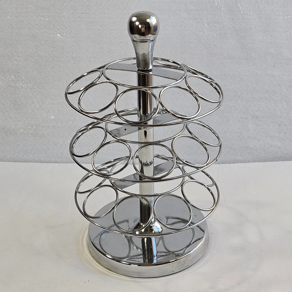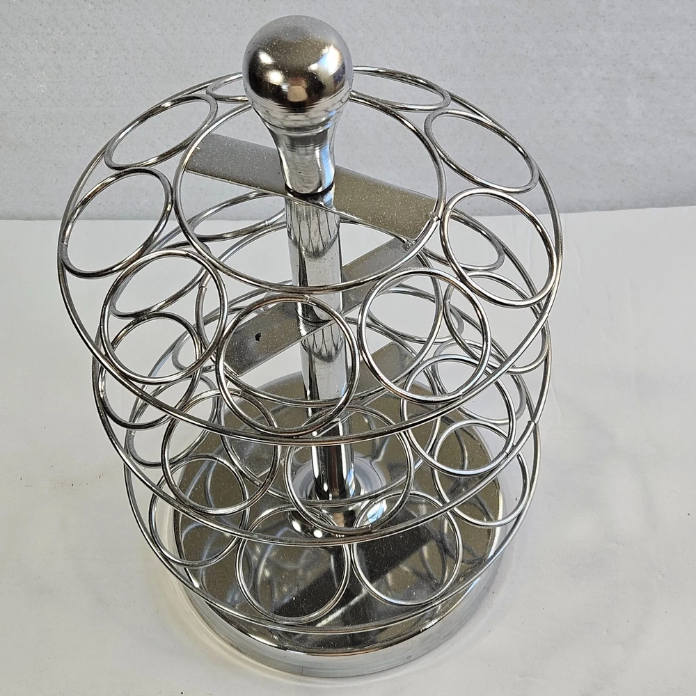 27 K-cup Coffee Pod Holder Swivel Chrome Carousel Stand For Keurig Coffeemaker Very good condition. Observe photos well for details. Items are carefully inspected to the best of my ability. I store my items in a pet and smoke free home. I ship quickly and welcome all questions and offers. If you would like to order more than one item, send me an offer so I can do combined shipping & save.
