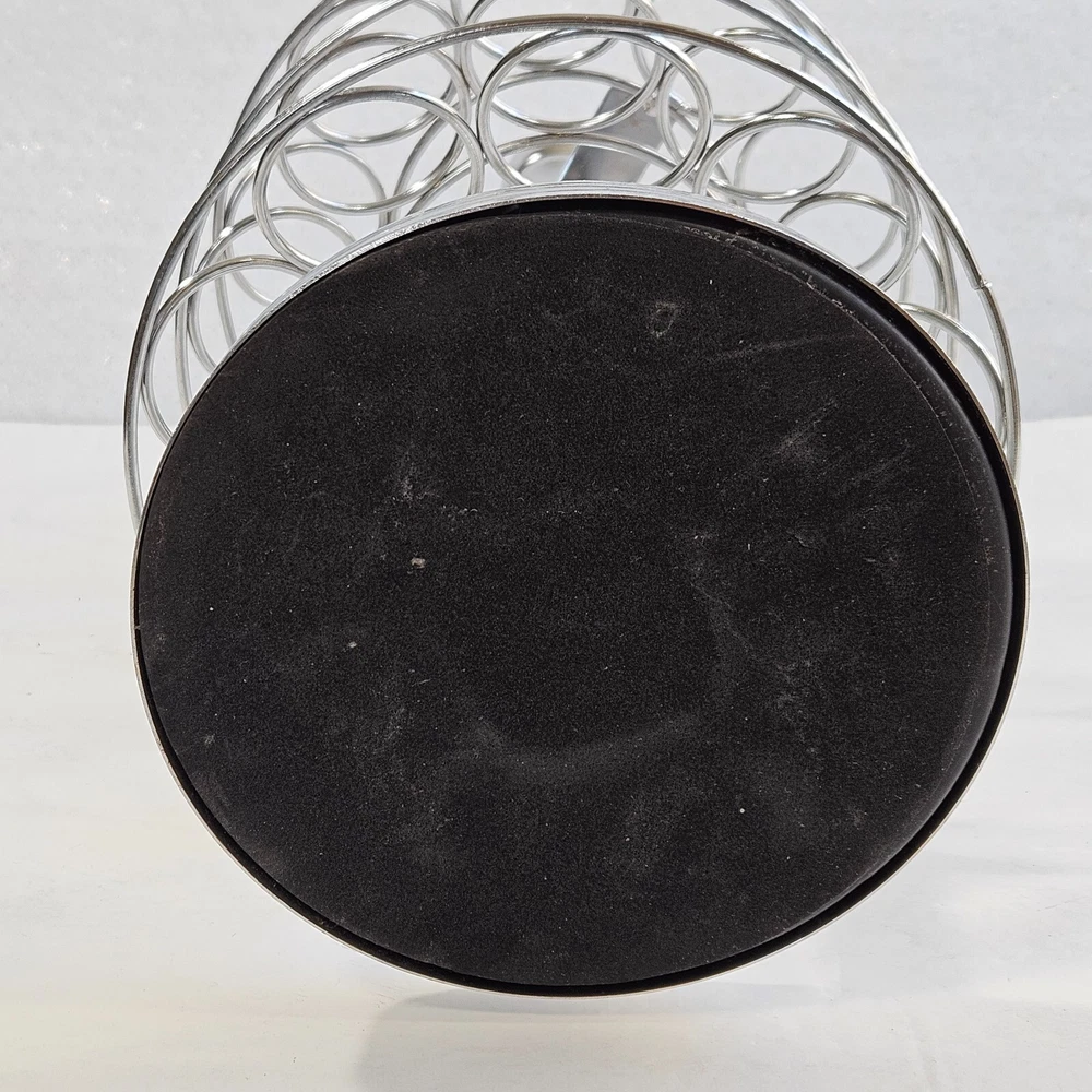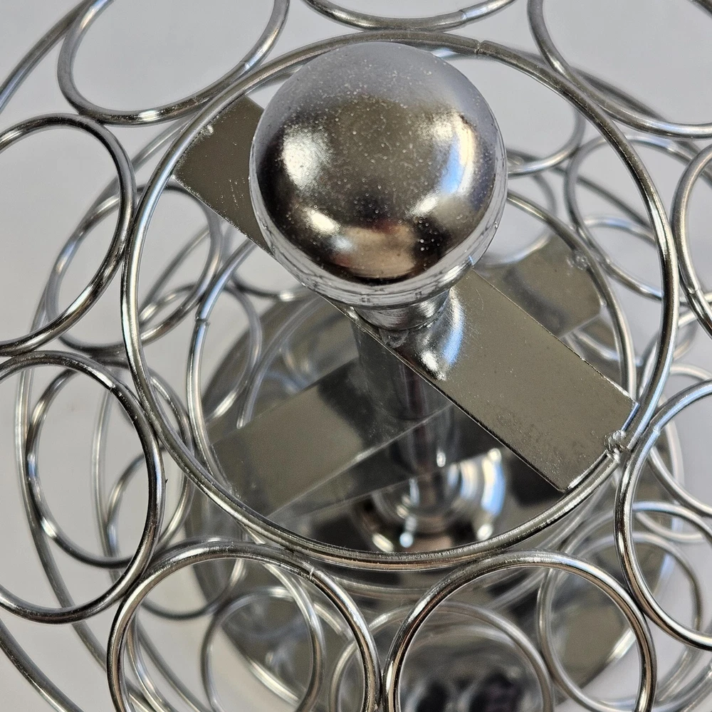 Brand: Unbranded Seller Notes: “Very good condition. Observe photos well for details.” Color: Silver Size: Medium Material: Chrome Item Width: 6in Item Height: 11 inches Number of Compartments: 27 Type: Coffee Pod Holder Style: Modern Rack Type: Carousel/ Revolving Number of Tiers: 3 Shape: Round Item Length: 8 in Number of Shelves: 3 Features: Rotating Base, Easy to Clean, With Handle