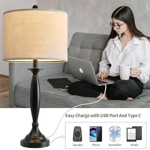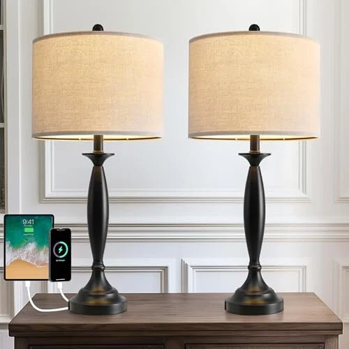 Menu 1. We require immediate payment. 2. We currently accept payment via eBay managed payments only. 3. Once payment is cleared, we will dispatch your shipment within 1-3 business days. Please refer to the "Shipping" tab for more information regarding shipping speed to your destination. 27" Modern Table Lamps Set of 2 for Living Room Bedroom with USB A+C Charging Port,Brushed Steel Bedside Lamps for Night Stands,Fabric Drum Shade Nightstand Lamp Light for End Tables Home Product description USB Table Lamps: Each modern nightstand lamp contains one 5V/2A USB charging port, regardless of whether the lamp is on/off, Table lamp set 2 is very easy to charge your electric device, such as mobile phone, kindle readers, iPad, iPhone. No need to search around for wall socket to charge anymore. Minimalist &Modern Design: The set of 2 bedside lamps are constructed of high-quality silver metal base and linen fabric lamp shades that provide a modern feeling aesthetic. Table lamp for living room is perfect in living room bedrooms, bedside, café, corridors, restaurants, etc. It displays a warm and beautiful atmosp to a room.(Note: The shade needs to be assembled) Easy Charge with USB A+C Ports:The table lamps with usb ports is constructed of high quality resin that creates the USB A+C Charging Ports - With built-in dual fast USB charging ports, it is more convenient to charge your devices such as smart phone, iPad, kindle reader, Airpods no matter the light is on or off. Farewell to the Charging sockets which far away from your bed or table. Safe and convenient: The assembly of the bedroom lamp is very simple, as long as the content of the manual can be installed in a few minutes. In addition, the power cord and plug of each living room lamps are nationally recognized safety standards and can be used with confidence. No Worry Product: The lamp for bedroom comes with 1 years aftersale. We are 100% dedicated to your complete satisfaction with our table lamp for bedroom. PLEASE MESSAGE US IF YOU HAVE ANY OTHER QUESTIONS, AND MANY THANKS FOR READING ALL OF THIS. Copyright ©#. All Rights Reserved.