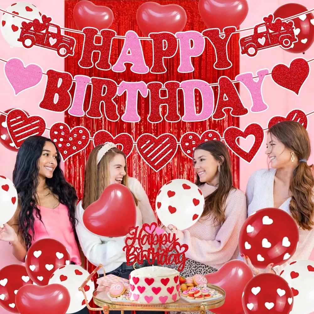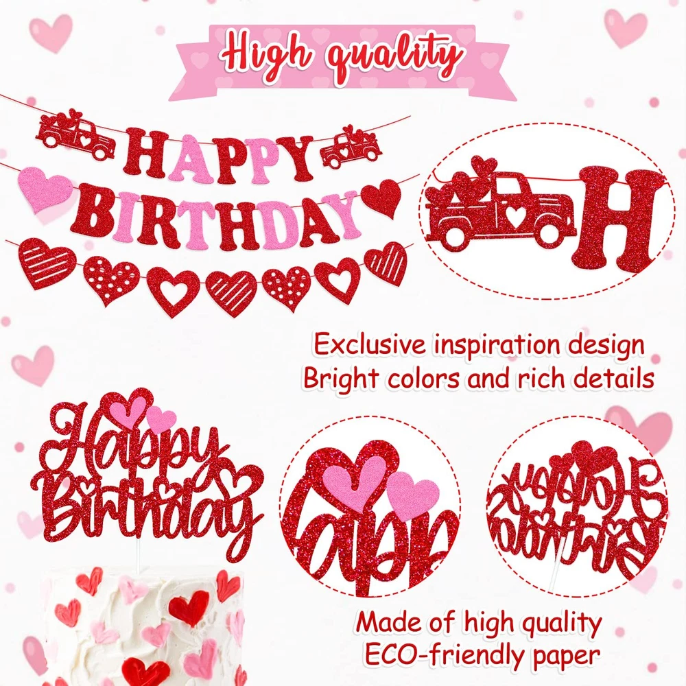 27 PCS Valentine's Birthday Decorations Happy Birthday Banner Valentine's Bda...