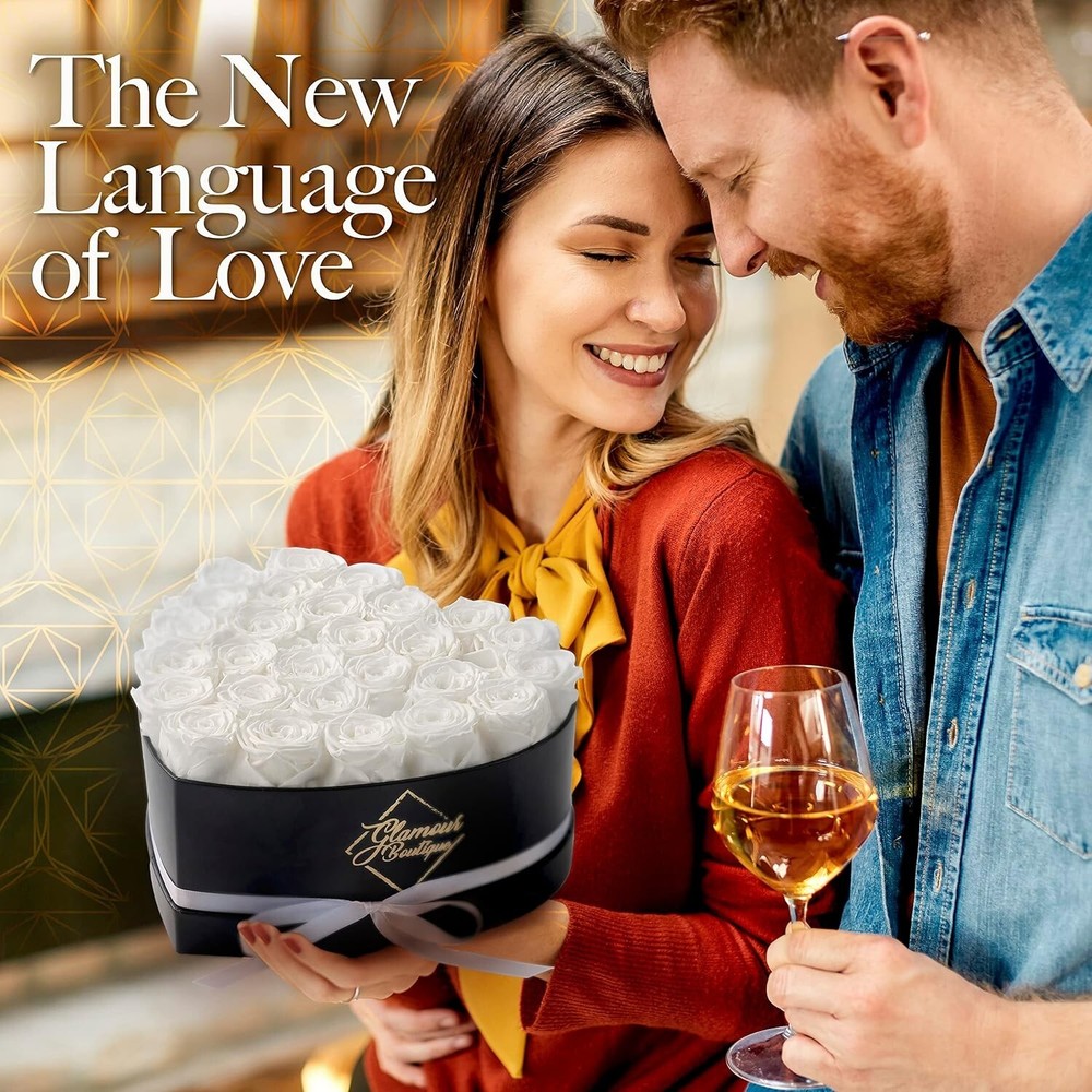 27 Preserved Roses in a Heart Box - Flowers Forever Valentine's Day, Roses Forever for Women, Roses Forever in a Box for Delivery, Birthday Gifts for Her, White Timeless Elegance in Every Box - Encased in a beautifully crafted heart-shaped box, our preserved flowers are meticulously arranged to create a stunning display of eternal beauty and love. Crafted to Last for s - Made from real roses using a premium preservation process, these preserved roses bouquet retain its natural charm for up to 3 s. Hassle-Free Maintenance - No water, sunlight, or upkeep required! These roses forever birthday gifts for women maintain their vibrancy and elegance, making it an excellent long-lasting gift or centerpiece. Versatile Colors & Arrangements - Choose from a variety of roses in a box sizes (7, 16, 27, or 50 roses) and elegant colors like Red, Blue, Pink, Tiffany, and more to suit any occasion or indoor style. An Exceptional Gift Idea - Delight your loved ones with roses, a luxurious symbol of everlasting love. Ideal flowers roses forever in a box for Valentine's Day, Mother's Day, weddings, anniversaries, birthdays, or as home decor.
