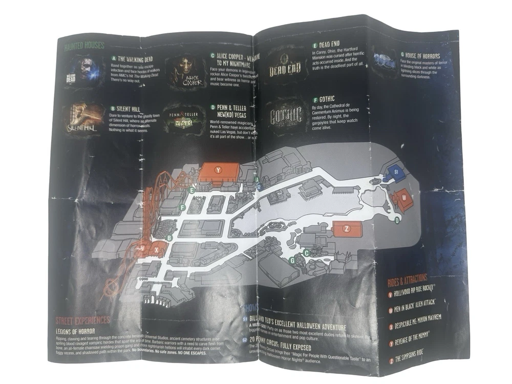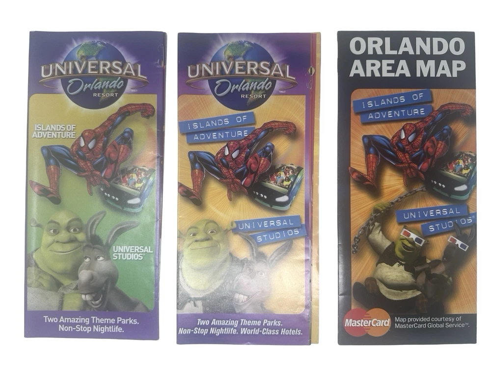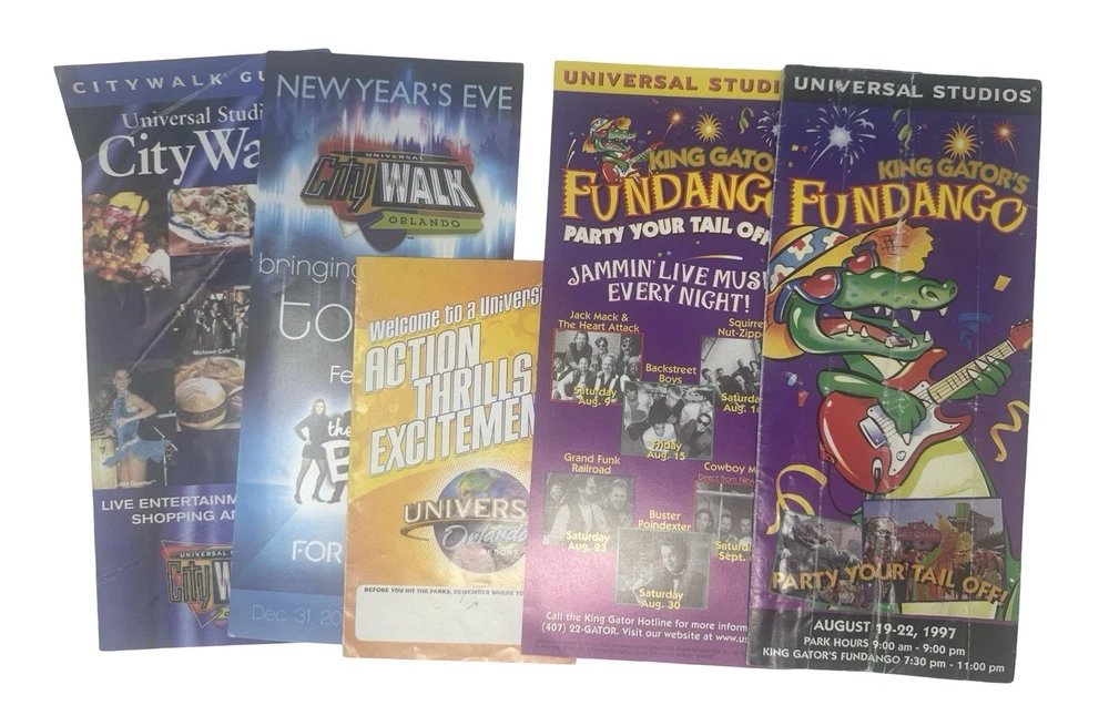 Offered here is a large mixed lot of vintage Universal Orlando Resort theme park guides, maps, and promotional brochures , spanning several different eras of the park’s history. This collection includes approximately 27 original pieces covering a variety of Universal properties and promotions including: • Universal Studios Florida park guides • Islands of Adventure brochures and adventure guides • Halloween Horror Nights event guides • Universal CityWalk promotional guides • Special event materials including King Gator’s Fundango • Early park promotional pieces and preview materials These guides were originally distributed inside the parks to visitors and many were intended to be used for a single day, making surviving examples increasingly collectible—especially when grouped together as a historical lot. The collection includes pieces from several notable Universal Orlando attractions and eras including: Early Islands of Adventure promotional guides 1990s Universal Studios Florida preview material Halloween Horror Nights event guides CityWalk nightlife and entertainment guides King Gator’s Fundango promotional material (1997) Many guides feature classic Universal characters and attractions including: Spider-Man Shrek & Donkey Islands of Adventure roller coasters Halloween Horror Nights haunted houses Universal CityWalk entertainment venues Together they create an excellent snapshot of Universal Orlando history , particularly the late 1990s through early 2010s era when the resort expanded rapidly. This lot would make a great addition for: • Theme park collectors • Universal Studios memorabilia collectors • Halloween Horror Nights fans • Orlando tourism history collectors • Scrapbook or display collections Condition Summary Mixed vintage condition. Most guides show normal park handling wear such as creases, fold lines, and light edge wear. Several are in very good condition, while a few show heavier wear including wrinkles and corner damage as shown in photos. All pieces remain complete and displayable. Features • Approx. 27 original Universal Orlando guides and brochures • Includes Islands of Adventure, Universal Studios, HHN, and CityWalk • Contains 1990s through early 2010s park materials • Includes Halloween Horror Nights event guides • Includes King Gator’s Fundango promotional guides (1997) • Early Universal Studios Florida preview guide (1995) • Authentic in-park distributed memorabilia • Condition ranges from fair to very good vintage condition Shipping & Returns • Free US Shipping • 30 day returns (must be returned in original condition)