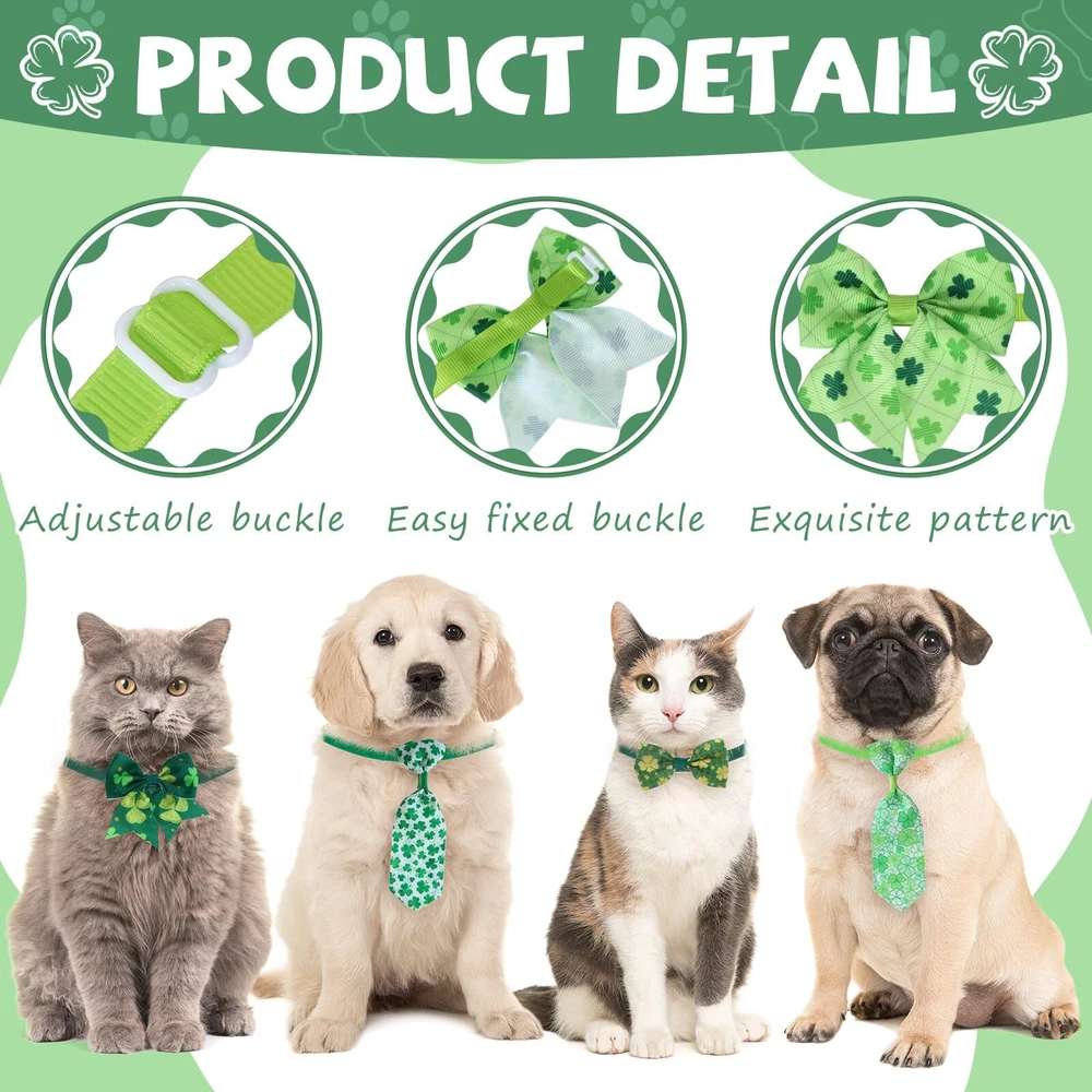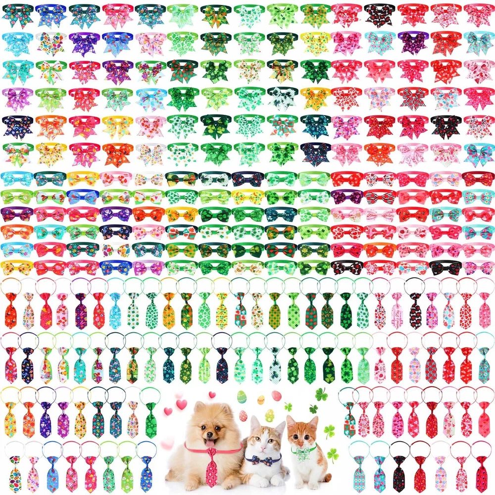 Features: Fit for most breeds: The dog collar bows are designed to suit dogs of most sizes, thanks to their adjustable straps. Whether you have a petite pup or a large hound, these bowties will make them stand out at the event. Unleash the cuteness: These bowties are suitable for holiday parties and special occasions. Whether it's a romantic Valentine's Day date, a lucky St. Patrick's Day celebration, or an egg citing Easter gathering, your dog will be the center of attention, charming people with their style. Specifications: Material: polyester Color: as the picture shown Size: as the picture shown Package includes: 270 x Dog collars Notes: Manual measurement, please allow slight errors on size. The color may exist a slight difference due to different screen displays Before purchase, confirm whether the product size is suitable for your pet, and observe the pet's reaction when using. Please remove the product in time if there is any discomfort. Package Contains: you will receive 270 pieces of pet collar tie sets in 3 styles, 180 pet ties included in 2 sizes, and 90 dog collar bows, a total of 270 pieces, from charming Valentine's Day hearts to festive St. Patrick's Day green and Easter patterns, we've got many occasions covered, specially designed for small to medium pets Size Details: the smaller bow tie is about 3 x 1.5 inches, the dog necktie is about 4.7 x 1.5 inches, and the larger bow tie measures approximately 3.1 x 3.5 inches; Pet holiday accessories come with plastic buckles, both tie and bow tie are adjustable, and the adjustable length range is from about 8.7 inches/ 22 cm to about 14.2 inches/ 36 cm; Please measure your pet's neck circumference before ordering Quality Material: these Valentine's Day, St. Patrick's and Easter dog bow ties and dog collars are made of quality polyester material, soft and comfortable, not only fashionable but also reliable; Your furry friend will look dapper while staying comfortable through the festivities Effortless Elegance: pet bow tie sets can easily enhance the holiday atmosphere, you can dress up your kitten or puppy during the holidays; These bowties are a breeze to adjust, ensuring your pet stays fashionable without fuss, suitable for holiday parties and occasions, and also suitable for daily wear Festival Pet Accessories: rich styles of dog bow ties and cat bow tie sets for your dogs and cats to dress up for St. Patrick's Day parades, pet birthday parties, celebrations, festivals, holiday themed parties, cosplay shows and more