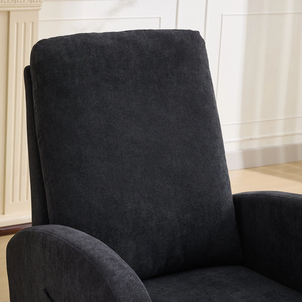 Specifications Place of Origin #originPlace# Main Color Black Main Material Polyester Dangerous Goods #dangerFlag# Dimensions & Weights Assembled Length (in.) 27.17 Assembled Width (in.) 37.00 Assembled Height (in.) 40.55 Weight (lbs) 44.00 Product Features Fabulous Comfort:Covered with high-quality polyester for a soft and breathable surface, the rocking chair brings you a luxurious yet casual sitting. A refined curved wing back provides a comfortable sitting position for you to enjoy a leisurely time. Gentle Rocking:The rocking chair has excellent curved legs , making it rock gently and smoothly. Such a sweet design is the perfect centerpiece for the nursery and leisure, enjoying your time. Side Pockets:This rocking chair has side pockets for items like unfinished books and remote controls. Make it more practical for you to use. Sturdy and stable:The frame is made of sturdy plywood and rubber wood legs, which is super strong and durable. In addition, there is an extra fixed wooden cross bar between the two legs for better stability. Its max capacity can reach 250LBS. Easy to install:This chair only needs to be installed on the backrest and feet, and it only takes an adult to install it in 10 minutes, which is very time-saving. Description Product Description Product Name Rocking Chair Overall Dimensions 27.17'W x 37'D x 40.6'H Overall Product Weight 44lbs Seating Capacity 1 Upholstery Material Polyester Seat Cushion Fill Material Foam Back Cushion Fill Material Foam Frame Material