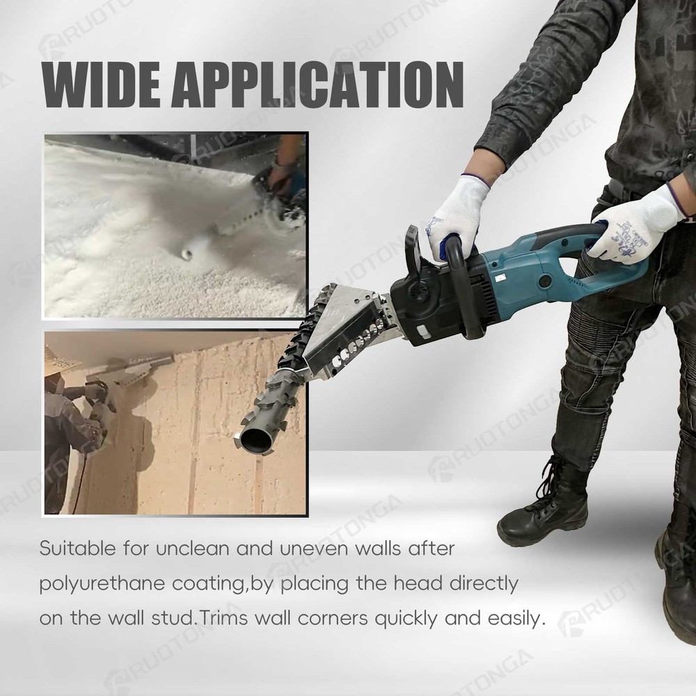 Close Cell Foam Planer 27.5" Foam Planer Insulation Trimming Equipment 110V/220V The wall after the polyurethane coating is not clean, this tool can make the wall clean and tidy. Trim corners quickly and easily. By running the head directly on the stud, it also uses its swivel head to feed itself into the wall. This can minimize the amount of work required to operate the trimmer if used properly. Operation way: 1. Use your both hands and firmly grips boths handles of the power and the cutter head. 2. start by completely trimmings the bottom two feet of the wall so you can avoid running the cutter bar through a pile of trimmings,and possibly cutting a hidden power cordmor hitting other obstacles. 3. do not runn the cutter over the edges of the steel hangers or braces. as the power and speed needed to cut foam quicly may cause the ridged edges ot tear off the cutter teeth. 4. To use the cutter eaiser and clener,run it up the wall with the cutter turnung and taking a light cut. 5.Use the small ,drill powered cutter to trim around receptacles,hangers and other tight places. Package Include : 1 set X polyurethane foam cutter machine planer 1 A pair of gloves Note: Please check the pictures carefully before buying to determine whether these products are what you need.Communication is the best way to solve the problem. If you have any problems after purchasing, please contact us in time before opening return or case.We will try our best to provide the best customer service. Have a great day!