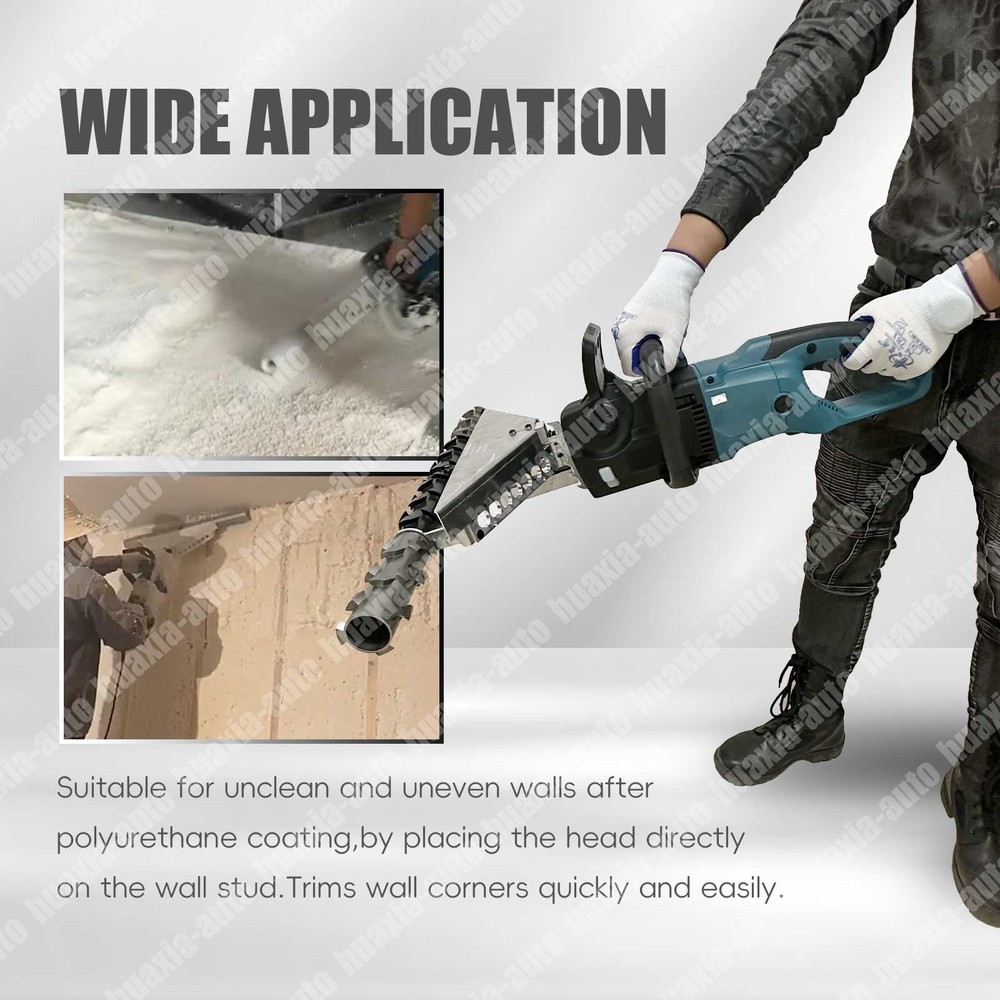 Close Cell Foam Planer 27.5" Foam Planer Insulation Trimming Equipment 110V/220V The wall after the polyurethane coating is not clean, this tool can make the wall clean and tidy. Trim corners quickly and easily. By running the head directly on the stud, it also uses its swivel head to feed itself into the wall. This can minimize the amount of work required to operate the trimmer if used properly. Operation way: 1. Use your both hands and firmly grips boths handles of the power and the cutter head. 2. start by completely trimmings the bottom two feet of the wall so you can avoid running the cutter bar through a pile of trimmings,and possibly cutting a hidden power cordmor hitting other obstacles. 3. do not runn the cutter over the edges of the steel hangers or braces. as the power and speed needed to cut foam quicly may cause the ridged edges ot tear off the cutter teeth. 4. To use the cutter eaiser and clener,run it up the wall with the cutter turnung and taking a light cut. 5.Use the small ,drill powered cutter to trim around receptacles,hangers and other tight places. Package Include : 1 set X polyurethane foam cutter machine planer 1 A pair of gloves