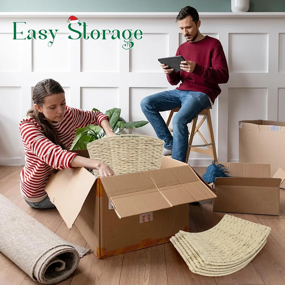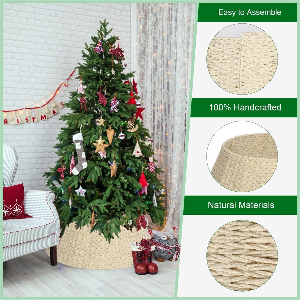 Christmas Tree Collar, 27.5" Hexagon Christmas Tree Base Collar for Artificial Tree, Foldable Woven Tree Collar, Christmas Tree Ring, Tree Skirt Collar, Christmas Tree Base Cover DURABLE CHRISTMAS TREE COLLARS: Christmas tree collars are made with an iron frame and heavy yarn hand knitted for durability; the beautifully knitted pattern adds a sophisticated and unique touch to your holiday decorations. Size Fits Various Tree Types: Once assembled, The tree skirt collar forms a ring shape with an upper opening diameter of 19 inches and a lower opening of 25.5 inches, standing 10 inches tall. The Christmas tree ring is suitable for Christmas trees ranging from 4 to 7.5 feet or with a base diameter of up to 25.5 inches. Design and Versatility: This handcrafted Christmas tree base cover adds a festive touch and elegant charm to any home or commercial space. The tree collar not only enhances aesthetics by covering the unattractive base of the tree but also keeps children and pets away from the bottom. Structure and Assembly: The large tree collar consists of 5 panels, each with locking clips for easy folding and storage. Assembly is simple and requires no tools—just lock the side panels into the front panel and slide the Christmas tree collar box into place in front of the tree. Eye-Catching Decoration: Decorate your Christmas tree with this Christmas tree stand cover. If you want your tree to stand out, this is the ideal choice. The Christmas tree box base complements any style, whether modern, farmhouse, or traditional, and will surely impress.