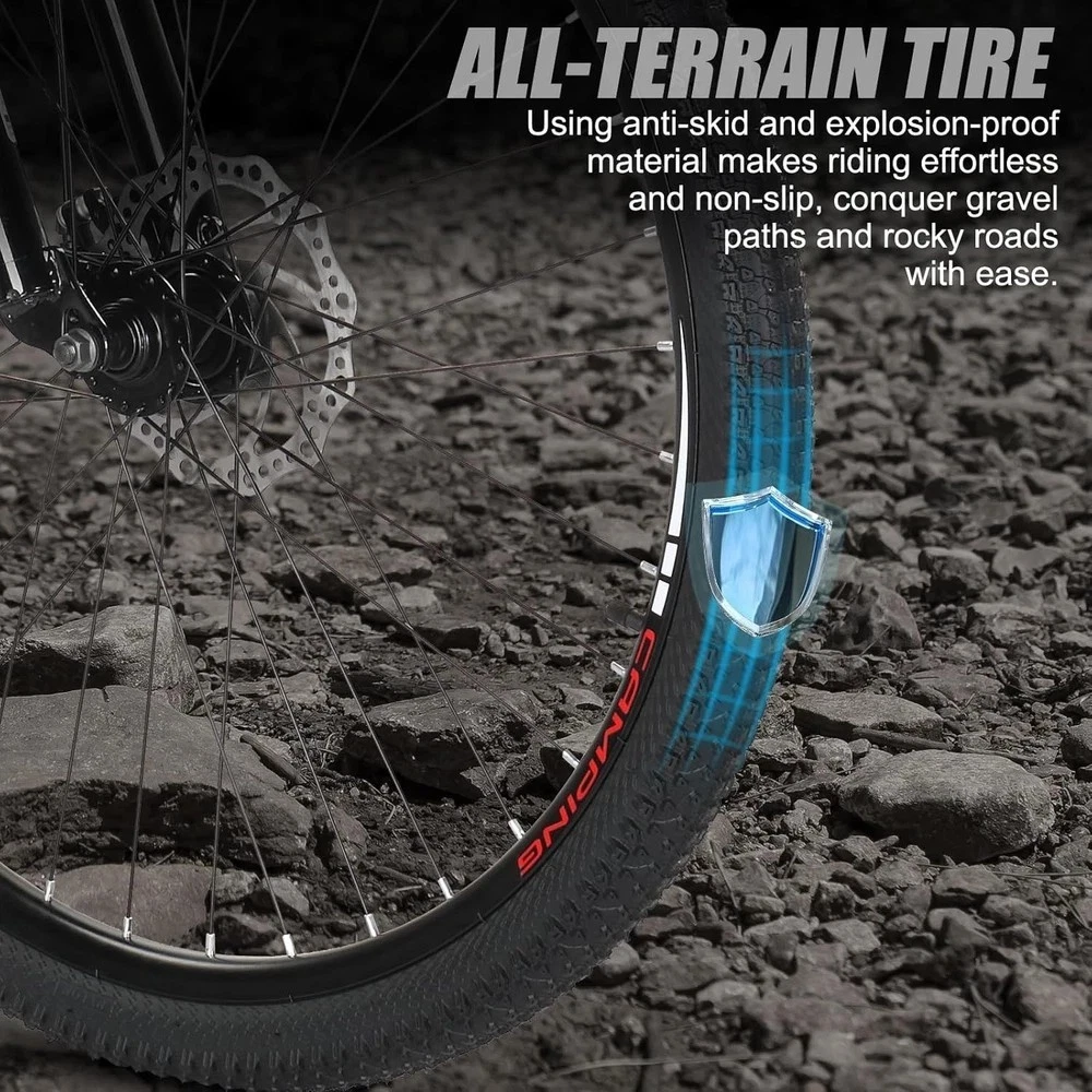 About this item PROFESSIONAL 21-SPEED SHIFTING SYSTEM: The 21-speed transmission system with quick, precise gear changes makes this mountain bike can easier to adapt to different terrain. Made of non-slip and explosion-proof materials, our tires can easily conquer gravel paths, dirt paths, and rocky roads POWERFUL SHOCK ABSORBING AND BRAKING: The shock-absorbing cushion is matched with a thickened shock-absorbing front fork that is fitted with a double shock absorption effect. Mechanical dual disc brakes have a strong braking force and can provide a more sensitive braking response than other brakes COMFORTABLE RIDING EXPERIENCE: Lightweight aluminum alloy wheels are matched with specially designed spokes that can better assist reduce wind resistance during riding. The lock-out suspension fork handles bumps and dips for a smoother-feeling ride DURABILITY & ADJUSTABILITY: Made of high-carbon steel frame, this adult bikes is strong and durable and will not deform. This mountain bike features a quick-adjust seat post clamp, you make easier adjustments seat to the right height EASY TO INSTALLMENT: The 27.5-inch bike arrives with 85% assembled. You only need to assemble the handle, cushion, front wheel and pedal, adjust the brake and gear to complete the assembly. PLEASE CONTACT US BY EMAIL IF YOU ENCOUNTER ANY PROBLEM THAT CANNOT BE RESOLVED Product Description Shipping We offer FREE shipping on all orders! We ship within Three business days of payment, usually sooner. We use a selection of shipping services such as UPS, FedEx, USPS etc. Local pickups and combined shipping options are not provided at this time. Return You can return a product for up to 30 days from the date you purchased it. Any product you return must be in the same condition you received it and in the original packaging. Please keep the receipt. Payment We accept payment by any of the following methods: PayPal Please pay as soon as possible after winning an auction, as that will allow us to post your item to you sooner! Feedback Customer satisfaction is very important to us. If you have any problem with your order, please contact us and we will do our best to make you satisfied. Contact Us If you have any queries, please contact us via ebay. We usually respond within 24 hours on weekdays. Please visit our eBay store to check out other items for sale! Thank you for shopping at our store. Disclaimer We are working with different suppliers in USA to deliver the item to your doorstep. If you have any issues regarding the item, Feel free to ask.