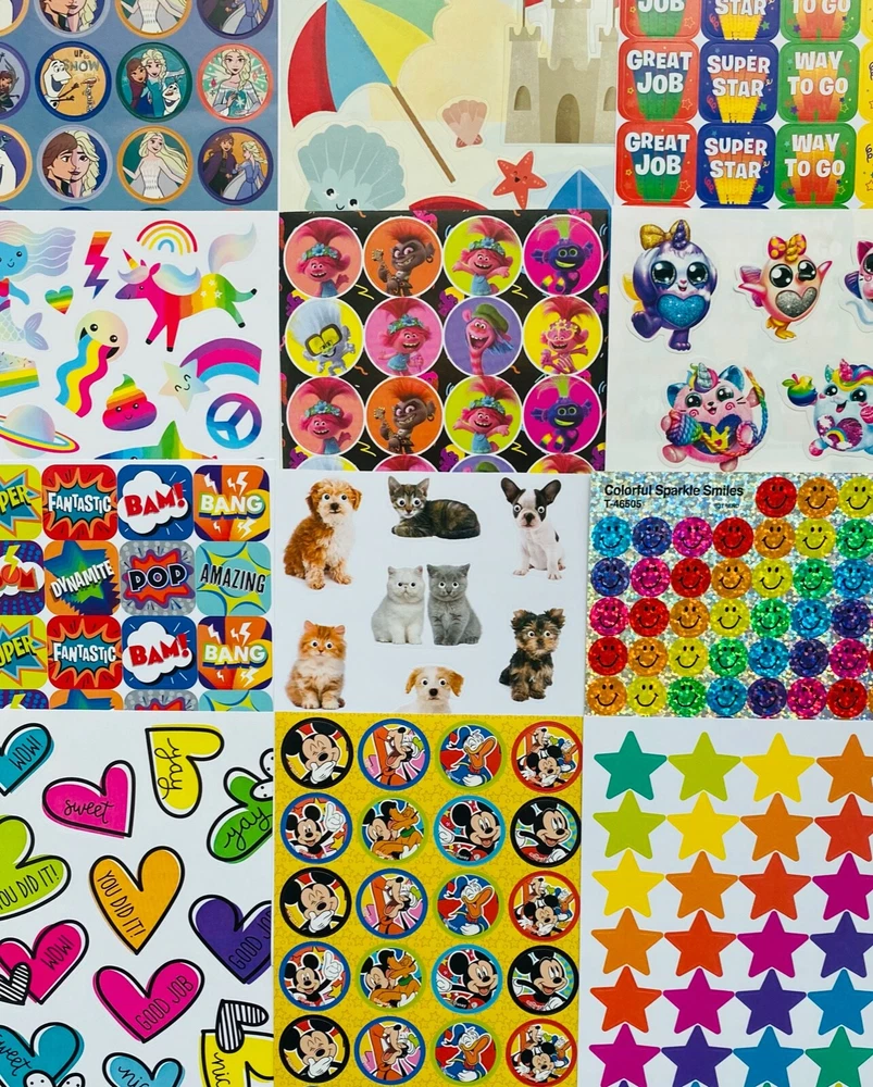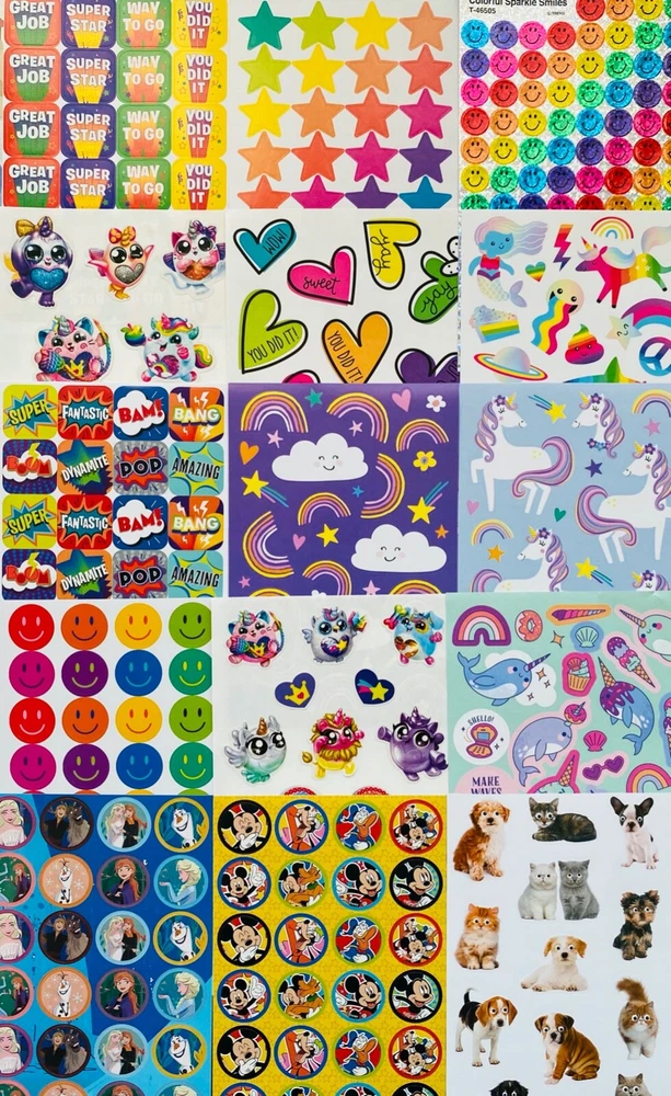 Special Mixed Sticker Lot | The Ultimate Sticker Collection | Qty. 275+ Stickers Fun Assortment of Glossy, Glitter, Puffy, Scrapbook, Cartoons, Bubble, 3D, Pop Up, Foil, Metallic Stickers For Everyone! I have included a large variety of pictures of the assortment available. The pictures give you an idea of what you will be receiving. Please Note: You will not receive everything pictured. Please contact me with any special requests. This HUGE Variety of fun designs stickers can be used in parties, classroom, school and home, good for reward for students, potty training, adding inside a birthday card, game activities, entertaining toddlers, etc. Perfect Gifts for Kids & all Occasions: Can be given as a gift for kids, girls, boys, toddlers, teens, students, friends, and classmates, they will love it! Each package of stickers is a different style & theme with some lovely embellishments like rhinestones, ribbons, buttons and other 3D details that make these quality stickers look so unique!