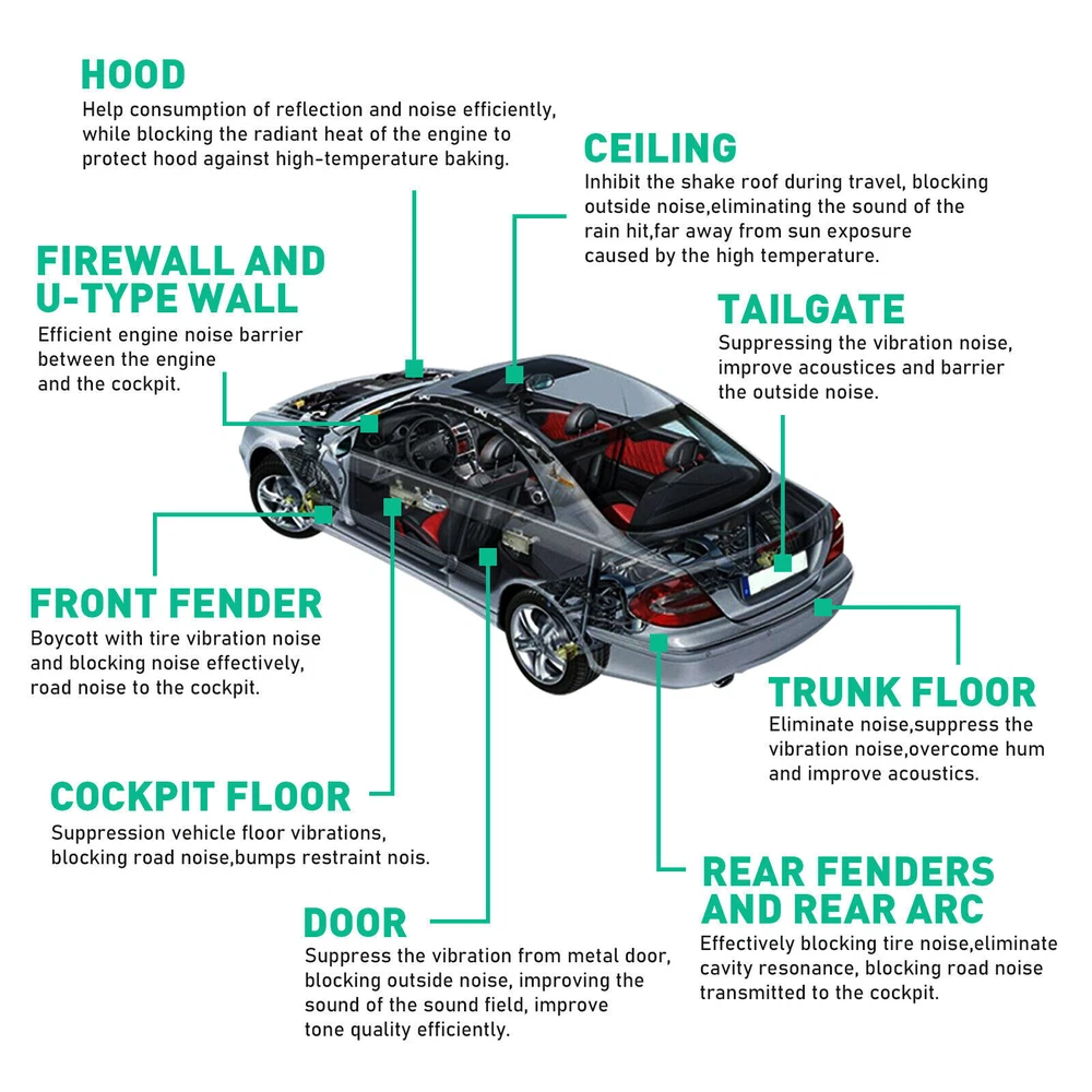 Specifications: Material: Aluminum & Foam Features: Car Heat / Sound Insulation Size: 3.36SQM / 36SQFT Thickness: 275" = 275mil Function: Car sound insulation Temperature Rating: 200 Degrees nominal Outer Material: 99.4% pure polished aluminum reinforced facing Reinforced / Crush Resistant: Yes Mildew & Mold Resistant: Yes Water resistant: Yes Non-toxic: Yes Features: Lanchu_7 Best choice of motor parts 275mil 36 sqft Car Tailgate Sound Insulation Deadener Mat 16"x315" + Roller Specifications: Material: Aluminum & Foam Features: Car Heat / Sound Insulation Size: 3.36SQM / 36SQFT Thickness: 275" = 275mil Function: Car sound insulation Temperature Rating: 200 Degrees nominal Outer Material: 99.4% pure polished aluminum reinforced facing Reinforced / Crush Resistant: Yes Mildew & Mold Resistant: Yes Water resistant: Yes Non-toxic: Yes Features: (1) Reduces unwanted sound & most vibrations (2) Effectively blocks 97% of radiant heat transfer (3) Keeps your interior cooler in the Summer & warmer in the Winter (4) Extremely light-weight, flexible, & crush resistant (5) Creates a mold & mildew resistant vapor barrier (6) Non-toxic & fragrance free (Will not smell) (7) Very easy to cut, handle, & install The benefits of Aluminum Foil: (1) The aluminum foil surface is extremely clean and sanitary, and no bacteria or microorganisms can grow on it. (2) Aluminum foil is a non-toxic packaging material, which can directly contact with food without any danger to human health. (3) Aluminum foil is a tasteless and odorless packaging material, which will not make the packaged food have any peculiar smell. (4) If the aluminum foil itself is not volatile, it and the packaged food will never dry or shrink. (5) No matter at high temperature or low temperature, aluminum foil will not have the phenomenon of oil penetration. (6) Aluminum foil is an opaque packaging material, so it is a good packaging material for products exposed to sunlight, such as margarine. (7) Aluminum foil has good plasticity, so it can be used to package products of various shapes. It can also create containers of various shapes at will. Package include: 36Sqft Sound Deadening Mat(Pack By Roll) 2X Application Roller 4X Removal Tools Note: 1.When you purchase multiple quantities at one time, we will say that the package is split into two or more pieces for delivery, so as to reduce the probability of breakage during transportation. 2.Due to different lighting and screen settings, the color of this item may be slightly different from the picture. 3.Due to different manual measurement methods, please allow a slight size difference Item Specifics Condition New Brand Modigt Type Carpet Mat, Heat Sound Deadener Insulation Mat Material Aluminum & Foam Placement on Vehicle Cargo/Trunk/Bonnet/Dashboard/Under Seat/Doors Color Silver & Black Features Noise Reduction, Easy to Cut, Self-Adhesive Universal Fitment Yes Features2 Easy Installation, Waterproofing, Fireproofing Features3 Protects Paint from Blistering, Anti-moisture Items Included 1Pcs 36Sqft Sound Deadening Mat With A Set of Installation Tools Suitable For Applicable to All Vehicles on The Market, Including Jeeps Fitment Type Direct Replacement Manufacturer Warranty 2 Years Size 315" x 16.5"= 36sq.ft (3.36sqm) Thickness 0.275inch = 275mil = 7mm Application 1 Turbo,Front Fender,Rear Fender Application 2 Hood,Firewall,Doors,Floor,Roof Application 3 Trunk Lid,Trunk Room,Engines,Tailgate Application 4 Ceiling,Underneath Bonnets,Underfelt Application 5 Underlay,Boot,Panel,Chasis Application 6 Automotive,Motorhome,Camper,Restorer Application 7 Classic Car,Race Car,Stock Car,Old Vintage Car,Pickup,SUV,Caravan Application 8 Van,Truck,limousine,Camper,Boat,Motor Homes,School Bus,Low Rider Application 9 Muscle Car/Hot Rods/Corvettes/Imports/Tuners/Street Rods/Rat Rods Application 10 For Use In The Application of Any Sound Deadening Application 11 Cockpit Floor, Tailgate, Firewall U Type Wall Payment 1. It will be much appreciated that you finish your payment asap or it will make UPI (unpaid item case) on your account leading to be suspended or restricted by eBay when those UPI cases carry over to certain amount. 2. Any problems please contact us for more details. Shipping 1. All items will be shipped to buyer's ebay address. 2. All items will be shipped within 24-48 working hours upon receipt of payment, and multiple items will be combined shipping. 3. In most cases, delivery takes around 3-5 business days, it's highly depended on the efficiency of the shpping carrier. If your item doesn't arrive on time, please contact us immediately for further assistance. Please note there is no local pickup service available. Returns If you are not 100% satisfied with your purchase, you can return the product and get a full refund or exchange the product for another one. Please Note: Please write us a message before your return, otherwise we will not accept the package. Any product you return must be in the same condition you received it and in the original packaging. Contact Us 1. We care about our valued buyers, if you have any questions, our Customer Service staff will be very glad to help you. We try our best to reply your contact as soon as possible, please kindly allow 24 hours for us to response. 2. Our goal is to make sure you are a happy buyer and pleasant shopping with us. Please contact us before leaving any 1 or 2 star ratings, negative feedback or open any dispute. We understand the concerns and frustrations you might have, and will do our endeavor to resolve the issues. Lanchu_7 Best choice of motor parts Shop Category Store Home Other Hot Item Excellent Delivery Help & Info Payment Policy Shipping Policy Return Policy FAQ About Us New List Item 39"x 39" Sound Deadener for Cars/Thermal Insulation Auto Noise & Heat Reduce USD 20.99 16"x10"x20Sheets Sound Deadener 276mil Car Heat Shield Insulation Deadening Mat USD 29.19 Sound Deadener Heat Shield For Car Firewall Hood Floor Insulation Mat 39" x 39" 