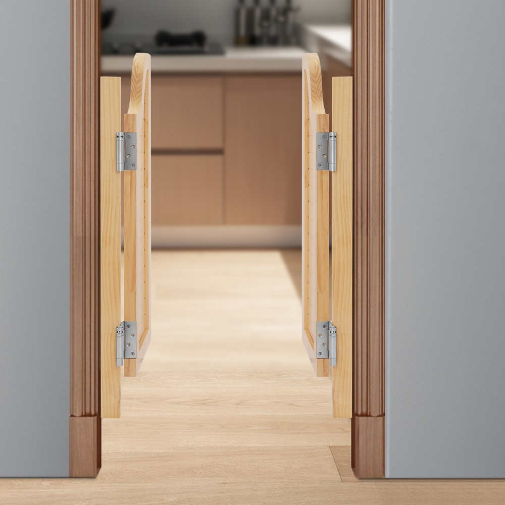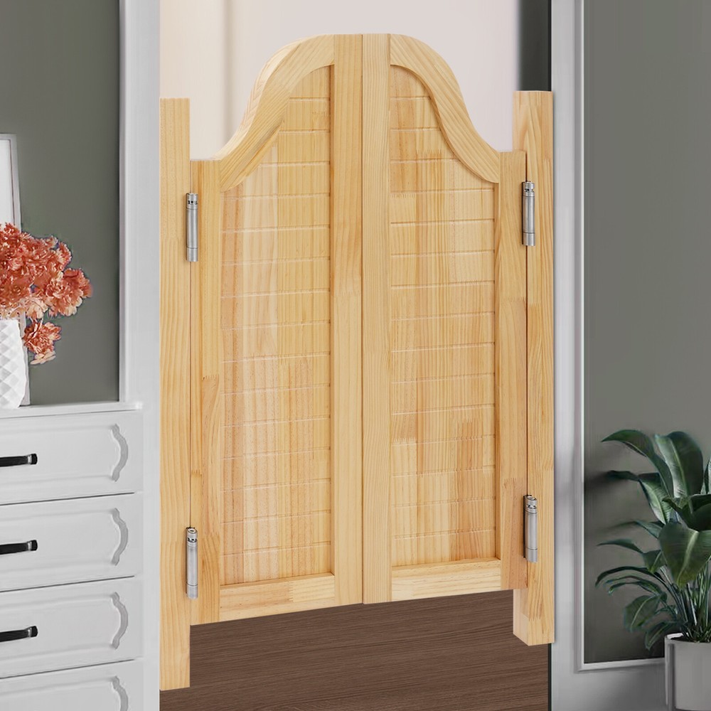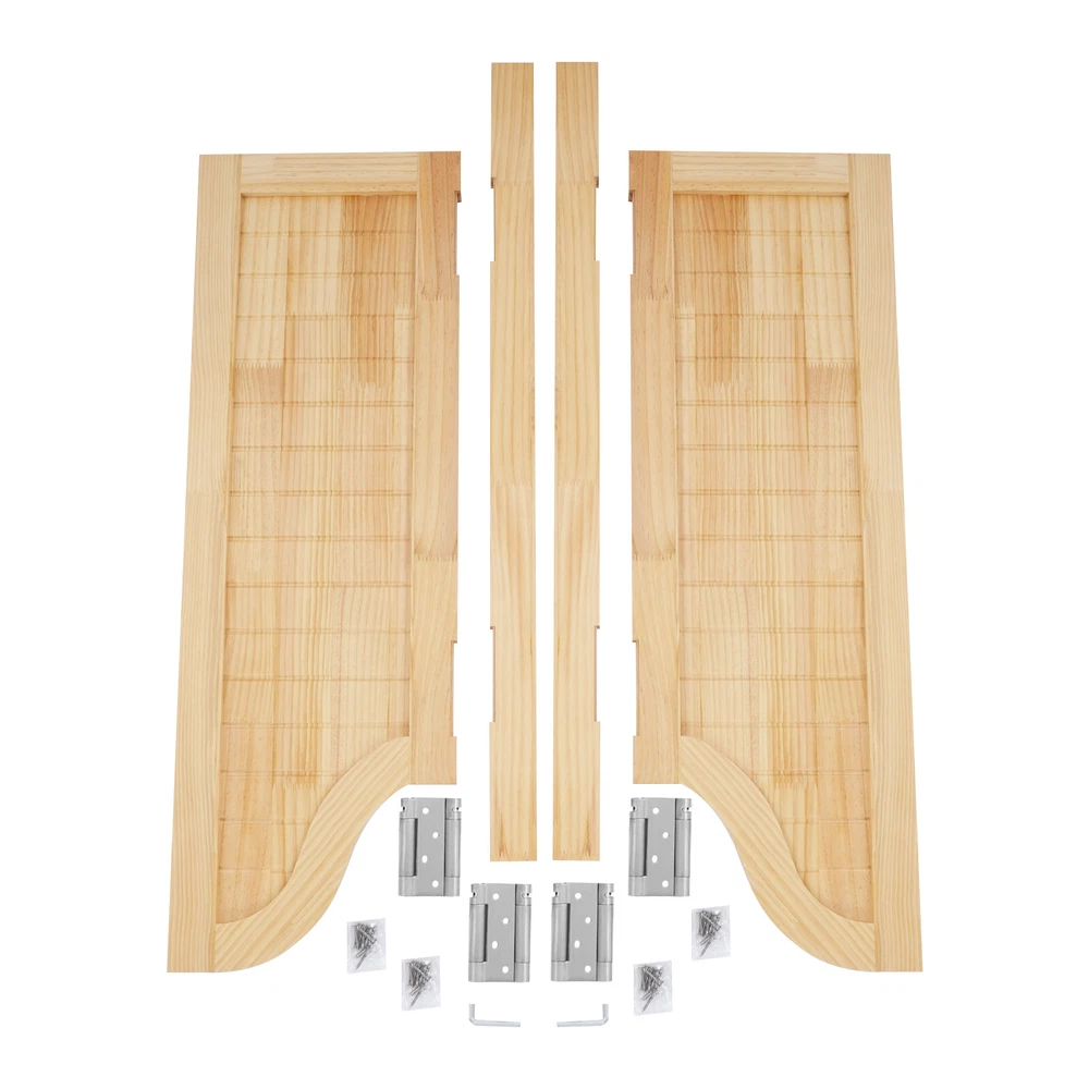 Each Doorpost Size(L*W): 5*3.5cm/1.96*1.37in Color: Log Color Opening and Closing Angle: 180° Product Size(L*H): 70*90cm/27.55*35.43in Mount Type: Door-mounted Style: Modern Process: Painting Pattern Type: Horizontal Stripe Thickness: 35mm/1.38in Package Size: 92*37*10cm/36.22*14.57*3.94in Each Door Size(L*H): 30*90cm/11.81*35.43in Gross Weight: 10kg/22.05lbs Number of Doors: 2 gtin13: Does not apply Material: Pine Wood, Stainless Steel Net Weight: 9.5kg/20.94lbs Assembly Required: Yes Brand: Unbranded UPC: Does not apply