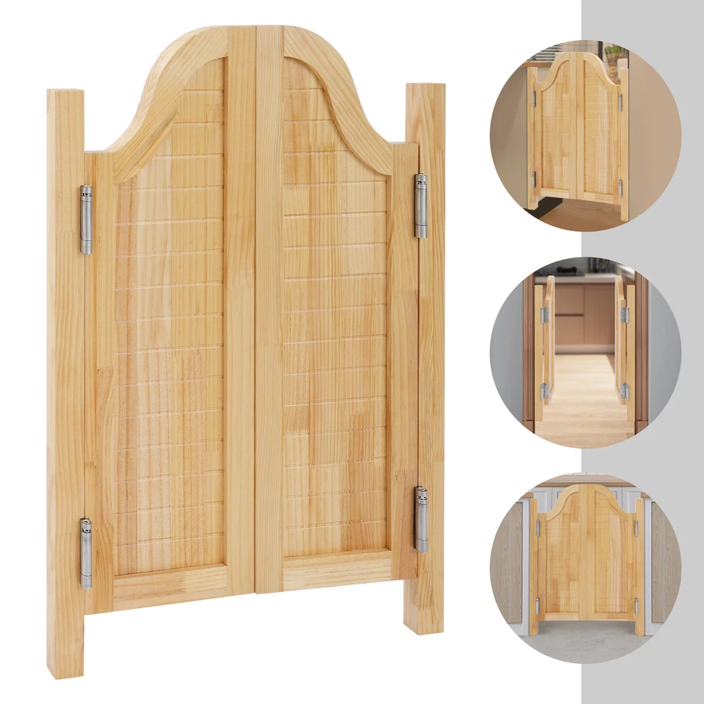 27.5x35in Log Color Partition Door Swing Solid Wood For Shop Entrance W/4*Hinges