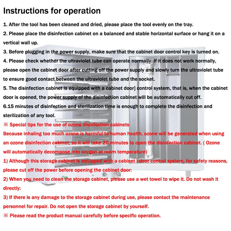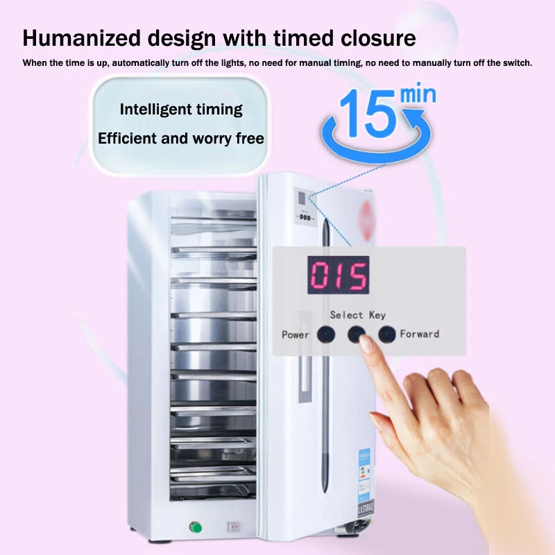 Store Categories Store Categories Home & Garden Business & Industrial Electronics & Battery Sports & Outdoor Other UV Sterilizer Cabinet Dental Medical Ozone Sanitizer Box Cleaning Disinfection Product Description Description: 1.This tabletop UV sterilizer cabinet Can be used to sterilize brushes, combs, Dry towels(wet towel can't), manicure and pedicure implements, surgical equipment, scissors.etc and Suitable for various scenarios, hospitals, dental clinics, beauty salons, pedicure and nail shops, household disinfection, etc 2.Built-in UV lamp(ultraviolet light) to sterilize different types of tools, Effectively clean your utensils and sterilize them for complete effectiveness. 3.Humanized design with timing function. 4.It's not suitable for liquid sterilization.Disinfection items need to be in a dry state and cannot be wet. 5.UV+ozone dual effect, more thorough dual disinfection. Feature: Size:31*23*48cm(9*12.2*18.9inch) Voltage:220V/110V Capacity:27L Package include: 1 X UV Sterilizer Cabinet With 10Pcs Trays (If you want to extra more Trays,pls connect with us,thank you) Instructions for operation: 1. After the tool has been cleaned and dried, please place the tool evenly on the tray. 2. Please place the disinfection cabinet on a balanced and stable horizontal surface or hang it on a vertical wall. 3. Before plugging in the power supply, make sure that the cabinet door control key is turned on. 4. Please check whether the ultraviolet tube can operate normally. If it does not work normally, please open the cabinet door after cutting off the power supply and slowly turn the ultraviolet tube to ensure good contact between the ultraviolet tube and the socket. 5. The disinfection cabinet is equipped with a cabinet door] control system, that is, when the cabinet door is opened, the power supply of the disinfection cabinet will be automatically cut off. 6.15 minutes of disinfection and sterilization time is enough to complete the disinfection and sterilization of any tool. ※ Special tips for the use of ozone disinfection cabinets Because inhaling too much ozone is harmful to human health, ozone will be generated when using an ozone disinfection cabinet, So we need to open the disinfection cabinet after 20 minutes after the disinfection is completed. ( Ozone will automatically decompose into oxygen at room temperature) 1) Although this storage cabinet is equipped with a cabinet door control system, for safety reasons, please cut off the power before opening the cabinet door: 2) When you need to clean the storage cabinet, please use a wet towel to wipe it. Do not wash it directly: 3) If there is any damage to the storage cabinet during use, please contact the maintenance personnel for repair. Do not open the storage cabinet by yourself. ※ Please read the product manual carefully before specific operation. Note: -Please allow slightly errors due to manual measurement and different monitors. Payment Policy Delivery details Terms of sales About us Contact us Payment Policy 1. We accept PayPal only. 2. All major credit cards are accepted through secure payment processor PayPal. 3. Payment must be received within 7 business days of auction closing. 4. If you have bought multiple items from me, you can send me one payment for all the items instead of paying for them individually. When you click the Pay Now button, eBay will automatically determine if there are other items you have won or purchased from me and will combine them for your review. 5. NOTE: Import duties, taxes and chargers are not included in the item price or shipping charges. These charges are the buyer's responsibility. Please check with your country's customs office to determine what these additional costs will be prior to bidding buying. Delivery details 1. We Ship to Worldwide. 2. Items will be shipped within 7-14 business day on payment received. 3. Item are shipped from Shenzhen using Airmail, reach most of the countries within 10 to 35. 4. Delivery time depends on destination and other factors, it may takes up to 40 business days. 5. We are not responsible for undeliverable address, we reserve the right to charge the shipping fee again for returned items due to wrong address. 6. If you do not receive your item by 30 business days, Please feel free to contact us via ebay mail system, we will try our best to resolve any problems with you. Terms of sales 1. You have 7 day to contact us and 10 days to return it from the date it was received. If this item is in your possession more than 7 days, it is considered used and WE WILL NOT ISSUE YOU A REFUND OR REPLACEMENT.There are NO EXCEPTIONS! 2. All Returned items Must Be in the original packaging and you MUST PROVIDE us with the shipping tracking number, specific reason for the return,and your ebay ID. 3. We will refund YOUR FULL WINNING BID AMOUNT, upon receipt of the item in its original condition and packaging with all components and accessories included, AFTER BOTH Buyer and Seller cancel the transaction form ebay.OR, you may choose to have a replacement. 4. Return shipping is to be paid by the Buyer. About us 1. We strive for our customer satisfaction at best possible. If you have any questions, please feel free to email our service specialists 24 Hours a Day, 7 Days a week. We will reply you ASAP. If no response within 24 Hours, please check the spam in your mail box. 2. We greatly appreciate your POSITIVE feedback. Please do NOT leave negative feedback without asking for help. Our aim is to provide Top Level Customer Service, normally so we will try our best to solve any problem you have. 3. Please DON'T leave negative or neutral feedback if you haven't received item in 30 days, because we have mentioned the shipping time repeatedly. Contact us Our customer-oriented service strives for positive feedbacks with all 5 star selling ratings . Please feel free to contact us via eBay message once you have any question before you giving us negative feedback or open case. Business