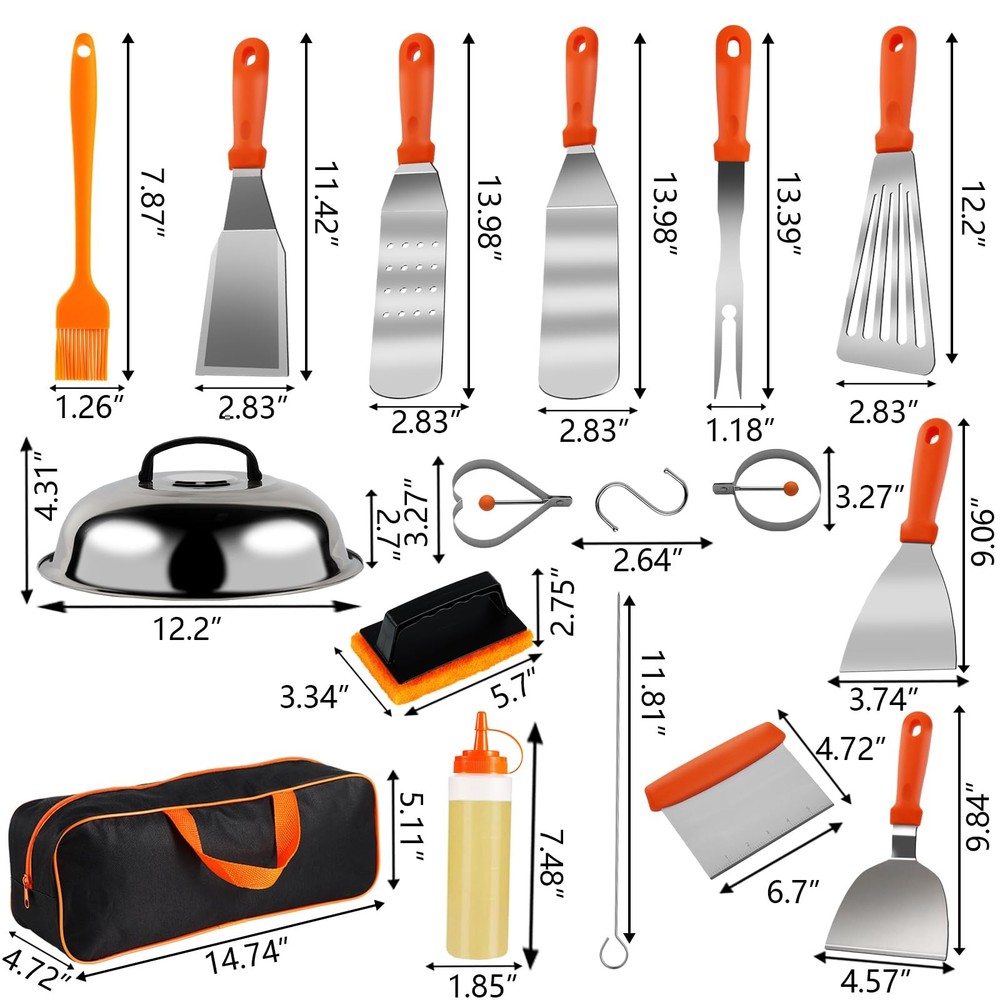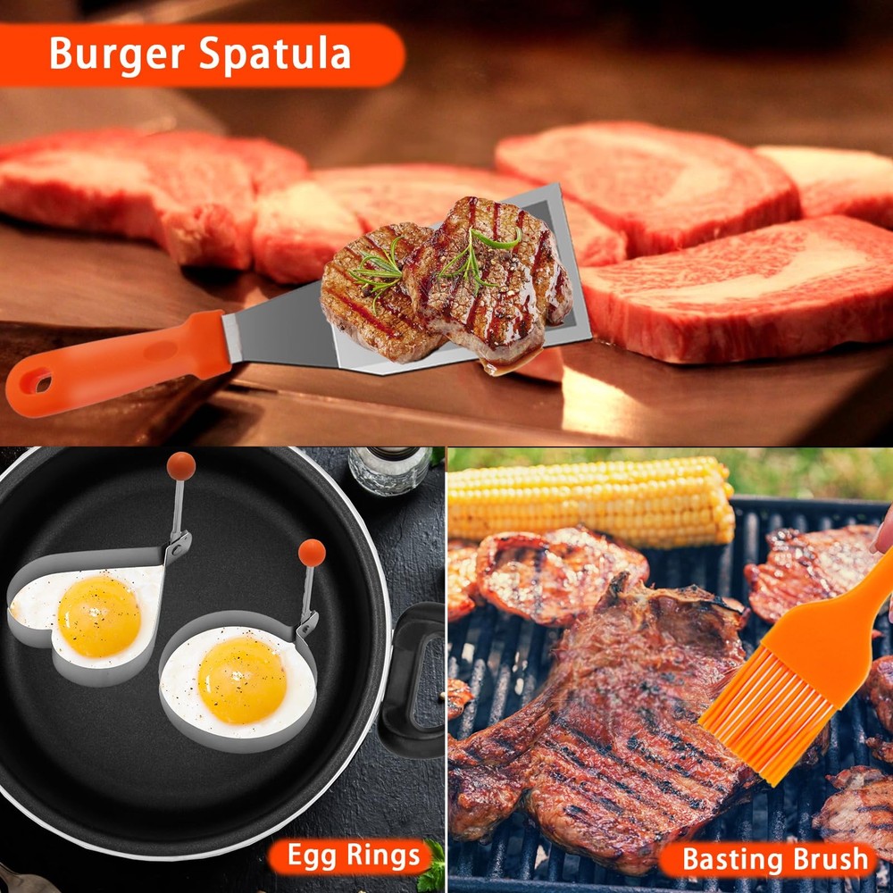 This griddle accessory set is a game-changer for any grilling enthusiast! The 27-piece kit has everything you need—scrapers, shovels, brushes—all designed for easy use and storage. The tools feel sturdy and make cooking on a flat top effortless. Perfect for beginners and pros alike, it simplifies cleanup and expands your cooking options. Highly recommend for anyone who loves outdoor cooking!
