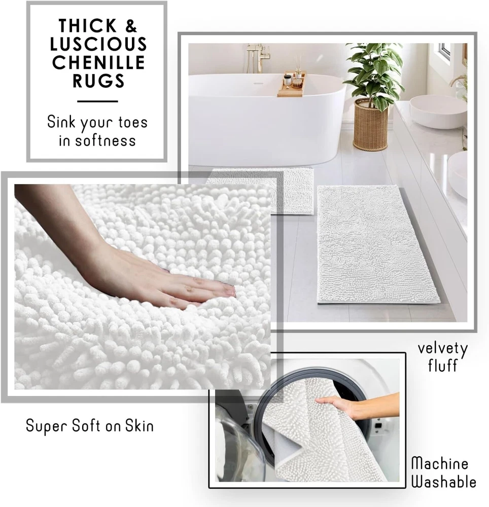 Bathroom Accessories Set with Shower Caddy and Bath Rugs 27PC Bathroom Accessory Set with Shower Caddies White Bath Rugs, Shower Curtain Set, Toilet Brush, Trash Can, Soap Dispenser, Toothbrush holder 100% Polyester White Bathroom Accessories Set: Incorporate white bathroom decor with our coordinated bathroom accessory set for bathroom organization. Our bamboo bathroom accessories are easy to set up and clean, transforming your bathroom into a spa-like retreat. 27 Piece Bathroom Set Includes: 5 Piece shower caddy set, 2 chenille Bathroom rugs (1 Large 20”x32” and 1 Small 17”x24”), Toothbrush holder, Tumbler, Soap dispenser, Soap dish, Bathroom trash can, Toilet brush and holder set, fabric shower curtain set with clear shower curtain liner and 12 shower curtain hooks. Boho White Shower Curtain: Our shower curtains for bathroom measure 72” x 72” and are made of durable, wrinkle-resistant polyester with a waffle texture, and includes a clear shower curtain liner with weighted magnets at the bottom to keep it in place, and 12 rust-resistant shower curtain rings. Efficient In Shower Storage Solution: Maximize and elevate your space with this versatile adhesive shower caddy set, perfect for organizing toiletries in the bathroom, bedroom, living room, or for use in the kitchen, its robust construction ensures a heavy-duty weight capacity, securely holding your essentials without sagging. Rustproof Durability and Easy Installation Bathroom Caddy: Made from high-quality stainless steel, this shower caddy set is designed to resist rust and corrosion, these self-adhesive shower shelves can be easily installed on tiles, tempered glass, marble, and wood walls without any drilling required ensuring long-lasting performance and durability.