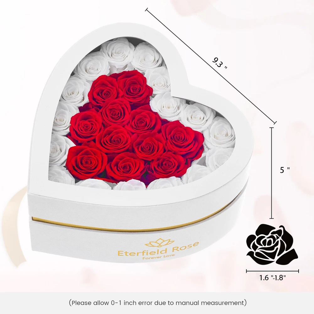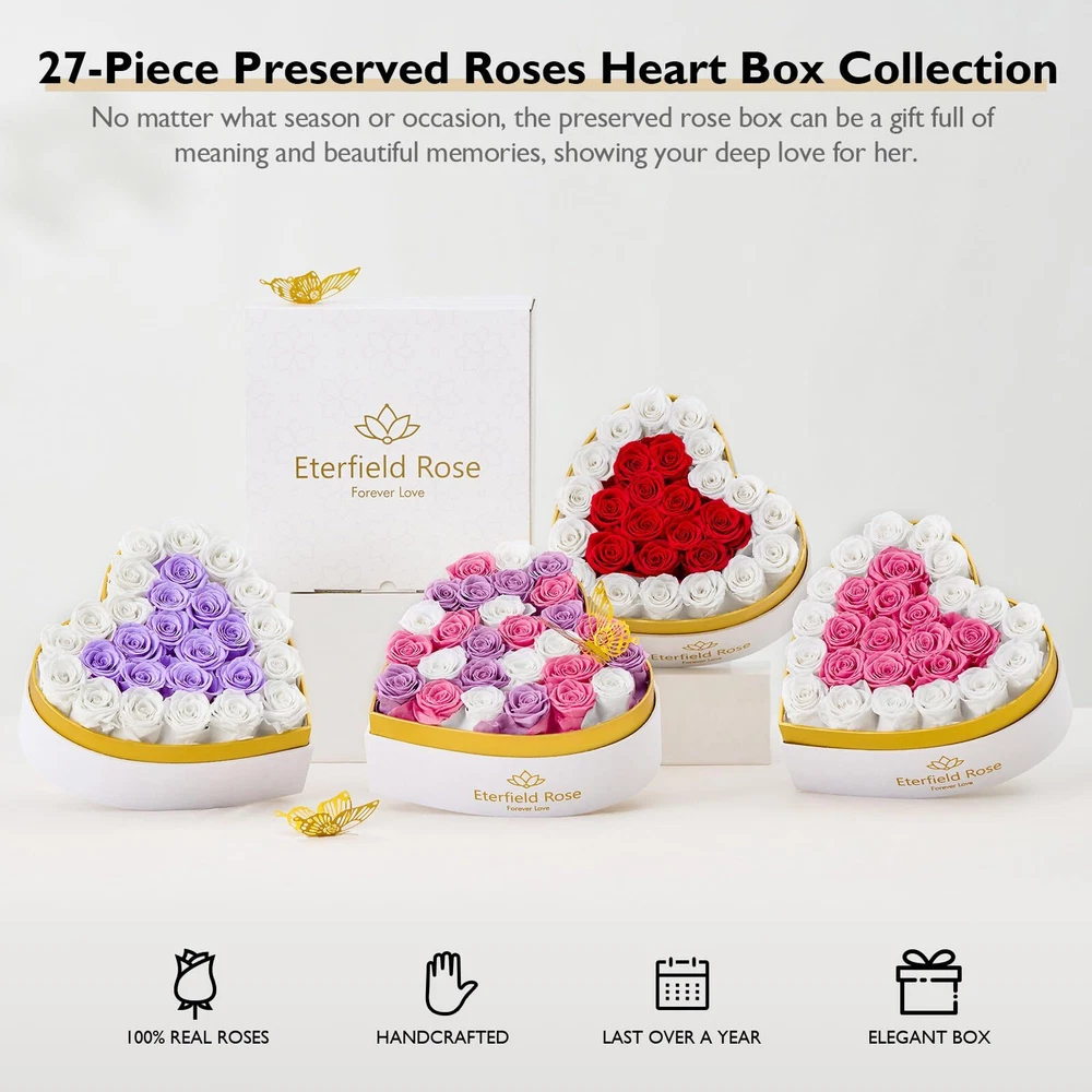 27-Piece Forever Flowers in Heart Shape Box, Valentine's Day Preserved Roses ...