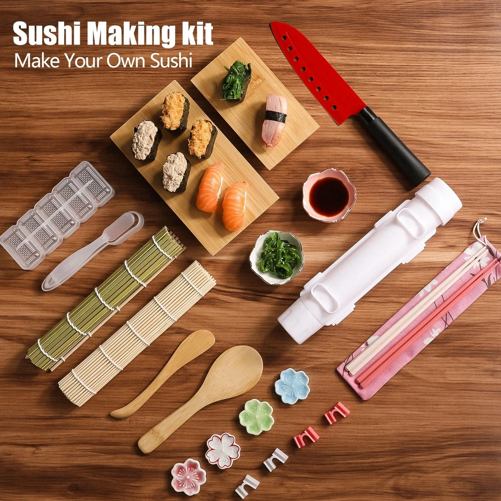 $ 17.24Deluxe 25-in-1 Sushi Making Kit with Bamboo Mat, Knife, Bazooka Roller & Sauce Tray