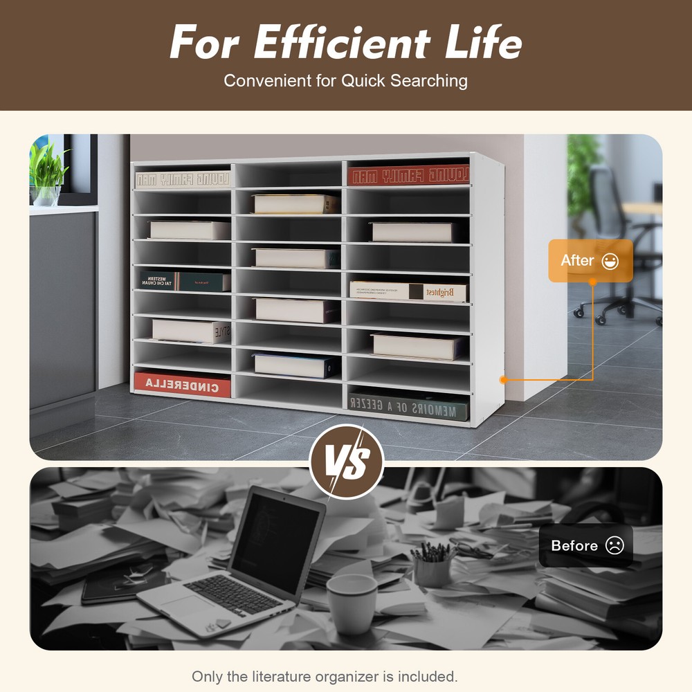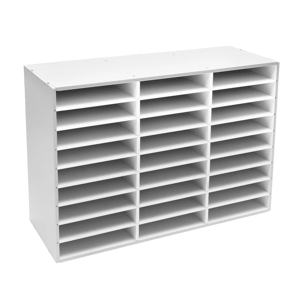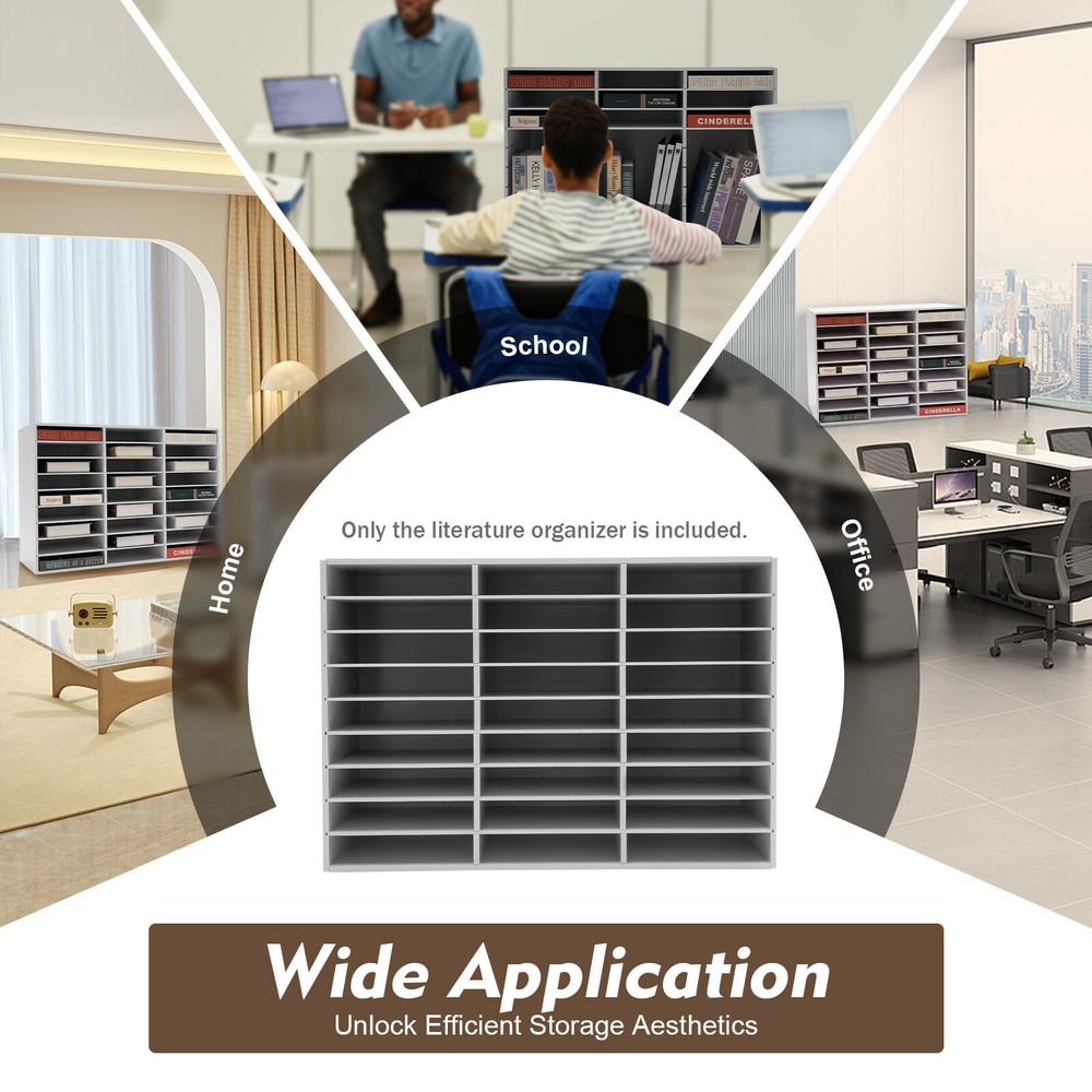 This literature storage rack is a game-changer for organizing papers! The sturdy PVC construction holds up to 600 sheets per slot, and the 27 compartments keep everything neatly sorted. Assembly was straightforward with the included tools, and the anti-slip pads add stability. Perfect for classrooms or offices—highly recommend for anyone needing serious storage!