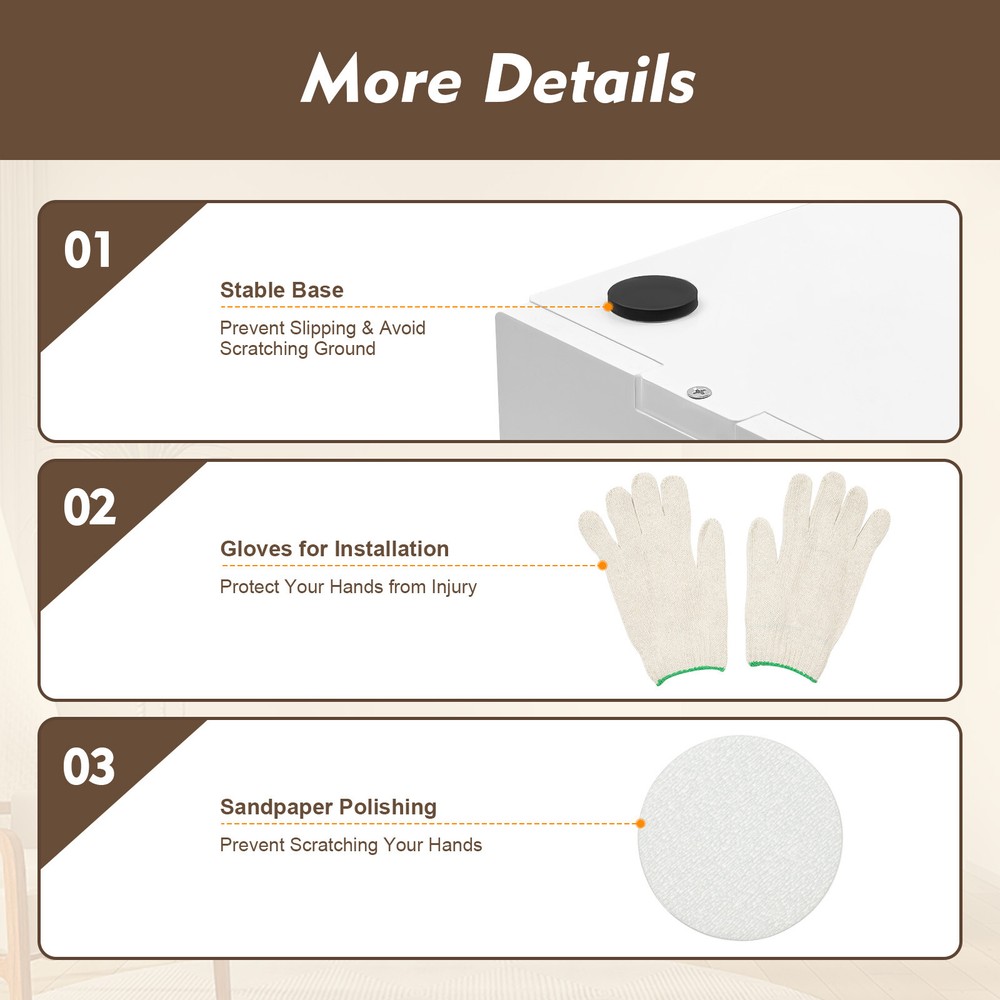 Specification Material: PVC Color: White Shape: Rectangular Style: Modern Each Slot Capacity: About 600 Sheets of A4 Paper Number of Slots: 27 Bearing Capacity: 50kg/110.2lbs Each Slot Size: 25*5.5cm/9.8*2.2in Top Board Thickness: 1cm/0.4in Shelves Thickness: 0.5cm/0.2in Product Size: 80*30.5*55.5cm/31.5*12*21.9in Package Size: 91*33.4*13.5cm/35.8*13.2*5.3in Net Weight: 10.95kg/24.1lbs Gross Weight: 11.75kg/25.9lbs Package Included 1* Literature Organizer 1 Pair* Gloves 1* Sandpaper 6* Anti-slip Pads 1 Set* Screws 1* Screwdriver 1* English Manual ❤❤❤Welcome to royalfeatured ❤❤❤ Description Description Are you still worried about the messy desktop? This literature organizer unlocks efficient storage aesthetics. With a pure white tone, it is not only a neat landscape in the office, but also an elegant decoration in the home space. Featuring 27 slots and a doorless design, it can easily handle A4 paper, magazines, receipts, and books, which can all be organized and clear at a glance. Make this literature organizer a powerful assistant for your efficient life, starting a clean and efficient day. Key Features Stable Support: It has a strong bearing capacity (110.2lbs) with a rectangular frame structure, and the thickened top board (0.4in) allows for secure placement of items above, meeting daily storage needs for documents, books, and heavy paper documents, ensuring stability and reliability. Easy to Install: It has a simple structure and complete packaging. Installing it only requires a few simple steps, saving time and effort. Premium Material: Made of high-quality PVC, it has wear resistance and shock resistance, and is not easily deformed, guaranteeing a long service life. Capable Organizer: It has 27 slots, and each slot can store approximately 600 sheets of A4 paper. The shelves adopt a movable design, so each shelf can be removed to accommodate tall items. It can help you easily achieve orderly management, making file storage less cluttered. Doorless Design: The doorless design saves space for opening and closing. It makes the file content clear at a glance without blocking the view and is convenient for quick searching and improving efficiency. Simple Style: It adopts a classic white color with smooth lines, which is not abrupt when placed by the desk, in the corner, or against the wall, easily enhancing the texture of the space. Easy to Clean: Its surface is smooth and flat, so you can easily wipe off stains with a wet cloth, which is convenient and effortless. Satisfaction Guarantee: No matter what problem you encounter or have any questions, please contact us. We will reply and solve the problem for you as soon as possible. Details Stable Base : Its base has six anti-slip pads, which can prevent the organizer from slipping and avoid scratching the ground. Gloves for Installation: The packaging includes a pair of gloves to protect your hands from injury during installation. Sandpaper Polishing: Sandpaper can be used to polish the edges of boards to prevent scratching your hands. Application It can store files, contracts, A4 paper, receipts, and other office documents. It can also be used to store children's toys, books, comics, etc. in homes, offices, or schools. Specification Material: PVC Color: White Shape: Rectangular Style: Modern Each Slot Capacity: About 600 Sheets of A4 Paper Number of Slots: 27 Bearing Capacity: 50kg/110.2lbs Each Slot Size: 25*5.5cm/9.8*2.2in Top Board Thickness: 1cm/0.4in Shelves Thickness: 0.5cm/0.2in Product Size: 80*30.5*55.5cm/31.5*12*21.9in Package Size: 91*33.4*13.5cm/35.8*13.2*5.3in Net Weight: 10.95kg/24.1lbs Gross Weight: 11.75kg/25.9lbs Package Included 1* Literature Organizer 1 Pair* Gloves 1* Sandpaper 6* Anti-slip Pads 1 Set* Screws 1* Screwdriver 1* English Manual Notes Please allow the slight color difference caused by the shooting light and 1-3cm error due to manual measurement, and make sure you do not mind before ordering. Payment Delivery details Terms of sales About us Contact us Payment We accept ebay payment 。 Fees such as import duties, taxes are not included in the item price or shipping costs. These charges are the buyer's responsibility. Delivery details Shipping: 2-9 working days to: USA Terms of sales We maintain high standards of excellence and strive for hundred percent customer satisfaction. Feedback is very important to us. We hope that you contact us immediately before you give neutral or negative feedback, so that we can address your concerns. It is impossible to address issues if we do not know about them! About us Your satis faction is our ultimate goal. We work hard to earn your trust and future business. Our certified technicians have tested each item before shipping. The unit comes with 1 year limited warranty on all manufacturing defects. a) If you receive a defective item, you may return it or ask for a discount. Please contact us within 14 days after you receive the package. b) What you returned must be intact and in its original packaging as re? u. Customer is responsible for shipping costs of the returned item. c) We will cover the cost of shipping back t with the shipping rate indicated in the registration page. We will send you a new unit or refund the full payment you paid. Thank you. Contact us Business Hour Business Hour: Monday To Friday: 8:30 AM to 5:00 PM (Beijing China time) Due to time zones, our reply to your questions may not be immediately. But within above working time, we will reply your email within 24 hours. If it's non-workdays, please kindly be patient and wait till Monday. Please contact us with ebay message. Please feel free to contact us if you have any questions. Monday To Friday: 8:30 AM to 5:00 PM (Beijing China time) Due to time zones, our reply to your questions may not be immediately. But within above working time, we will reply your email within 24 hours. If it's non-workdays, please kindly be patient and wait till Monday. Please contact us with ebay message. Please fee