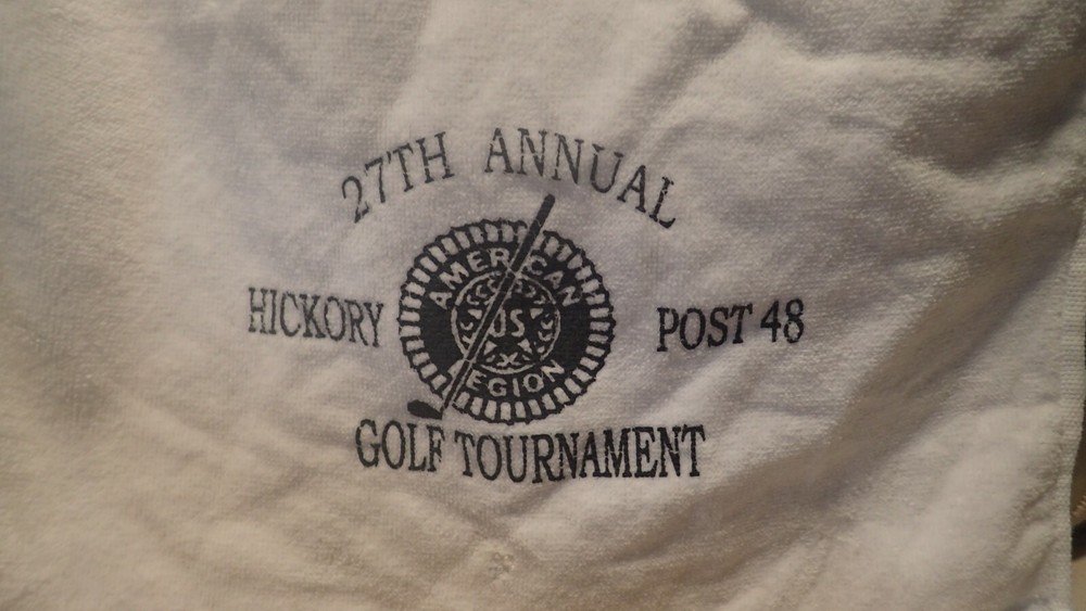 27th Annual Hickory Post 48 Golf Tournament Players Golf Towel We describe items as clearly and as detailed as possible PLEASE RESEARCH THIS ITEM BEFORE BIDDING SEE PICTURES ..... ANY ?? ..... PLEASE ASK ME Our pictures are part of the description. Please examine them carefully. You get exactly what is pictured. WE DO NOT KNOW THE PREVIOUS OWNER AND IF THEY WERE SMOKERS OR HAD PETS WE PURCHASE VINTAGE ITEMS AND MOST PEOPLE WERE SMOKERS AND HAD WOOD AND COAL BURNERS AND HAD PETS IN THE 50s-70s PLEASE KEEP THAT IN MIND IF YOU CANT HANDLE SMOKE But please keep in mind that I am not a Collector or Expert. Please contact seller immediately if unhappy with your purchase and before opening a case, leaving negative, neutral, or a low detailed seller rating 1, 2, or 3 and we will work with you to resolve the issue. I WILL SEND WITHIN 1 DAY PLEASE DO NOT GIVE BAD FEEDBACK FOR SLOW SHIPPING Item Shipped in 1 business day, not including weekends, and holidays. Payment due in 3 days, after purchase. Items shipped economy, media, or parcel post can take 2-6 weeks for delivery No Reserve. Item being sold as is. BUT I WILL ACCEPT RETURNS FOR GOOD REASONS Shop My Store http://stores.ebay.com/mikeseverythingshop