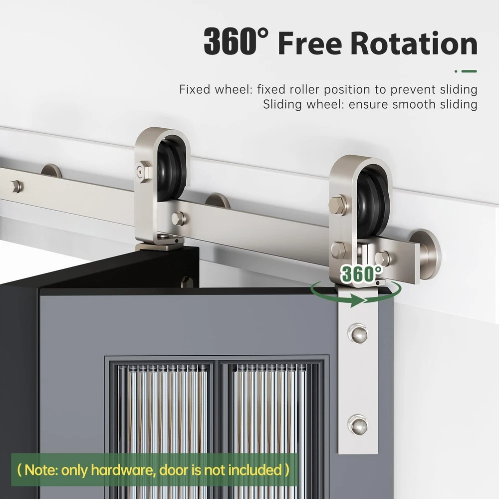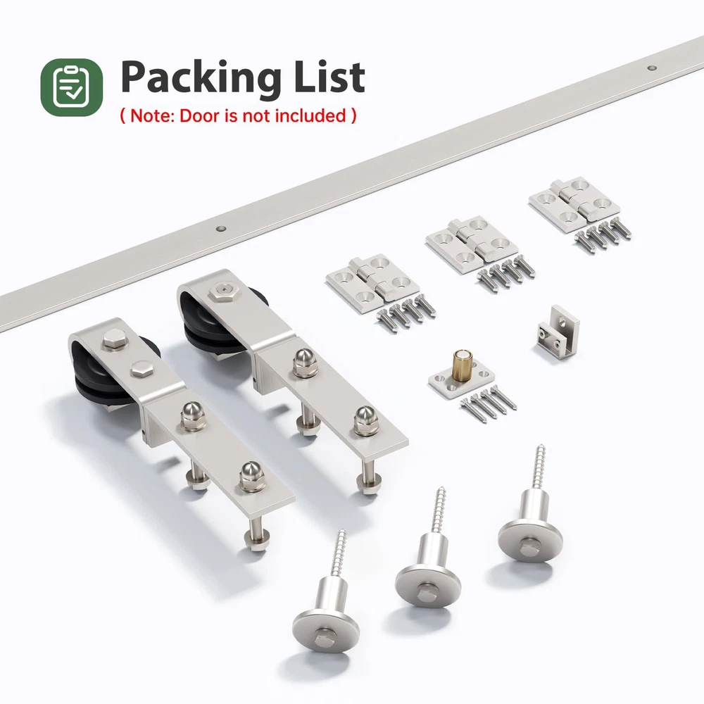 28" Brushed Nickel Bifold Sliding Barn Door Hardware Track Kit,Side Mounted Roller,Smoothly and Quietly,Assembly Easy,Fit Double 12" Bi-Folding Doors (Door Not Included) SUPERIOR QUALITY: Made of steel, and brushed nickel surface, with the benefits of sturdy and durable. The roller is a combination of high-quality bearings and nylon wheels, matched with 6mm thick track to improve the bearing capacity of the product. And it has undergone 120,000 tests to ensure quiet and smooth sliding. DESIGN CONCEPT: Different from the traditional hardware kit on the market, the folding door kit can greatly save you space. And the scope of application is wide, can be used in a variety of living occasions, such as living room, kitchen, study, closet, etc. PRODUCT DETAILS: Packing: 1x 2.3FT track, 2x roller, 2x roller rotating bracket, 1x roller fixator, 3x spacer, 3x hinge, 1x floor guide, 1x Sealing Strip. Fit Door Thickness: 1-3/8"~1-3/4"(35mm~45mm). [Friendly reminder: DOOR NOT INCLUDED] EASY TO INSTALL: The total width of the door panel plus 4" is the length of the track. We provide detailed Bi-Fold sliding barn door kit instructions with pictures and text, which can be intuitively installed by yourselves, saving the time and cost of finding an installation team for you. ALL DAY SUPPORT: We have a professional customer service team 24 hours online to help you. If there is any problem about our products, please let us know and we will try our best to solve your problem.