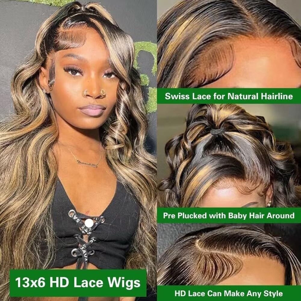 Brand: Density: 180% Density Body Wave Lace Frontal Highlight Wig Texture: Highlight Ombre Body Wave 13X6 Lace Front Wigs Human Hair Glueless Wig Material: 10A Grade Brazilian Virgin Human Hair Highlight Lace Frontal Wigs Body Wave Glueless Wigs Human Hair Pre Plucked Lace Size: 13X6 Swiss HD Lace Body Wave Lace Front Wigs Human Hair Glueless Human Hair Wigs for Black Women Cap Size: 22-22.5 inch medium cap size, 4 Combs and Elastic Straps Wig Color: Highlight Ombre Balayage FB/27 Color, Can Be Dyed, Bleached, Permed, Straightened, suitable for diy Hair Length: 18-34 inch Available, Please stretch the hair to straight, then to measure, True to Length and Weight. Hair Quality: Highlight Ombre 13x6 Lace Frontal Wigs Clean, Healthy, Soft, Smooth, Bouncy, Full & Thick, No Smell, No Tangle, No Shedding About body wave wig: 13X6 Ombre highlight balayage lace front wig human hair body wave HD lace front wigs human hair, honey blonde colored wigs human hair wigs for black women pre plucked with baby hair around glueless wigs human hair FB/27 colored body wave wig, blonde wig human hair 180 density lace front wigs human hair full lace wig FB/27 Balayage Wig Human Hair Material: 100% Unprocessed 10A Brazilian virgin human hair body wave lace frontal wigs, full and thick, natural look, health and comfort, soft and bouncy, can be easily bleached, re-dyed, straightened and permed into whatever style you like HD Lace Front Wigs Size: 13x6 HD Transparent Swiss Lace, blends perfectly into your skin, soft and breathable, 180% density body wave lace front wigs human hair looks more natural and full, FB/27 color makes you shine even more Hair texture: Body wave highlight ombre lace front wig human hair 180% density, body wave wig for women wet and wavy wig, true to Length & Weight, no shedding, tangle free, can be side part, middle part, high ponytail& bun, can design any shape you like, suitable for diy Wig Cap: 22.5 inches wig cap and has 4 wig combs inside the wig, which on the front and back, right and left. There also has an elastic band in the wig cap, it can adjust, suitable for any head circumference. Suitable For Occasion: 28 inch body wave balayage lace front wig human hair in line with your pursuit of a new trend and new fashion, suit for your birthday party, graduation ceremony, wedding, cosplay, vacation, Make you the most charming; can also be used as gifts for family and friends Quality Service: We have a professional after-sales team, If you have any questions about our 13x6 balayage body wave wig, we will solve it for you in time.