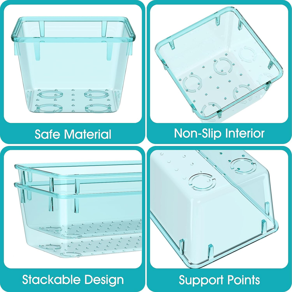 Premium Material: The transparent material of the plastic organizer bin can help to see the items inside clearly, easy to find and use. Diversified Dimensions: A set of cabinet organizer includes 25 storage bins of 4 different sizes. Includes: 9 x 6 x 1.8 inches (4pcs), 9 x 3x 1.8 inches(4pcs), 6 x 3 x 1.8 inches(10pcs), 3 x 3 x 1.8 inches(10cps). You can customize the combination to customize your own drawers. Versatile Storage Options:These clear versatile drawer dividers trays are suitable for various drawers such as dresser/bathroom/kitchen/office drawers/craft room, ideal for organizing cosmetics, pins, hair accessories, jewelry, tableware, office supplies, crafts and more. Stackable Design: These clear storage bins not only stackable but also maximize space so that your desk drawers can be effectively organized. Non-Slip Design: The bottom of the organizer bins has a non-slip design to prevent the tray from moving around when opening and closing the drawer. Product Description Premium Material Stackable Design Non-Slip Grip on Bottom Office Organizer Kitchen Organizer Bathroom Organizer