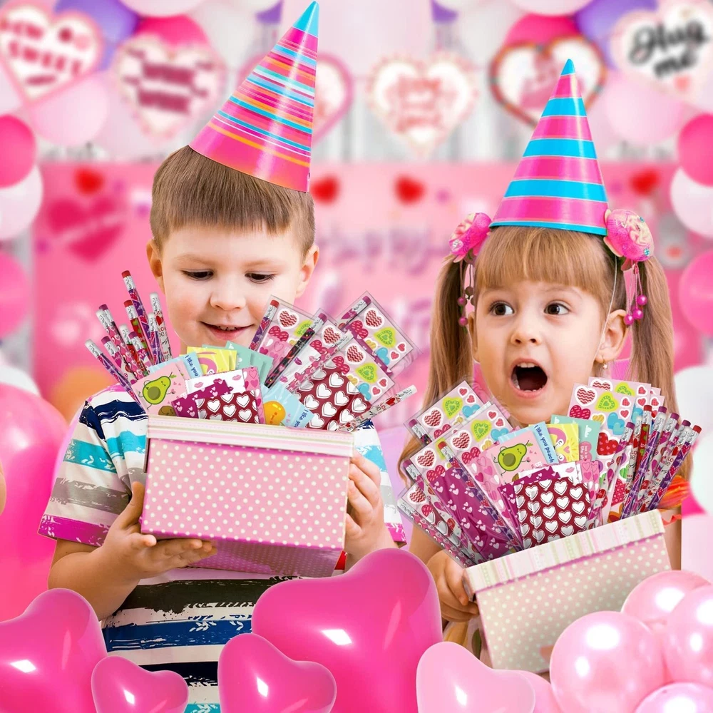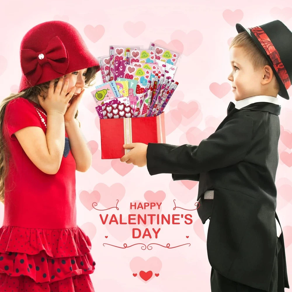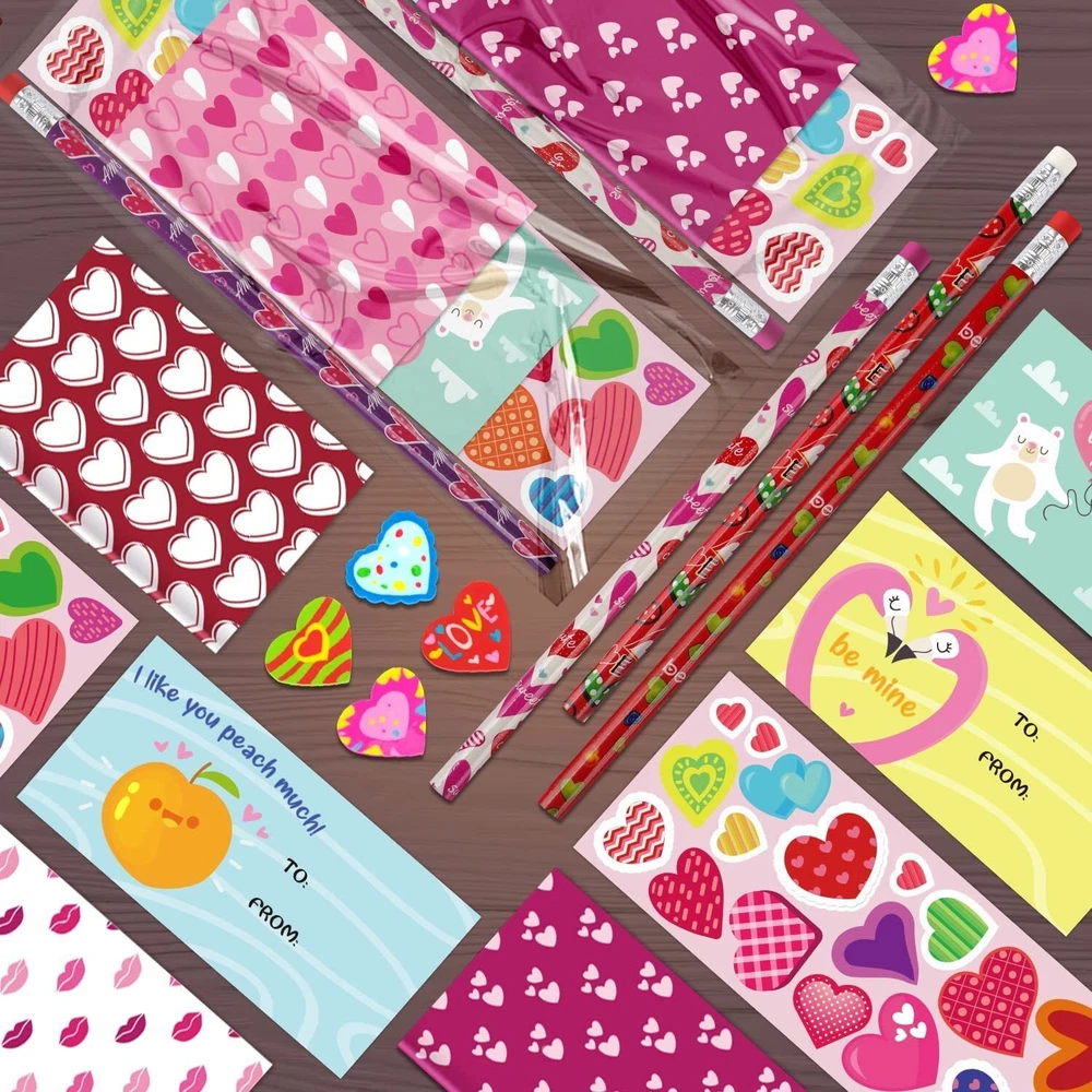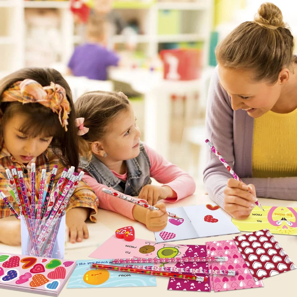 What's inside: Super Value with 28 Pack Assorted Valentine’s Stationery Gift Set for Classroom Exchange! Comes with 28 Pencils in 4 designs, 28 Erasers in 4 designs,28 lovely 3D stickers, 28 Greetings Valentine's Day Cards in 4 designs,28 Notepads in 4 designs.Rich enough for whole class. Special Function. Accompaniment to any great Valentine's Day gift and a memorable way for everyone to send wishes for a happy Valentine's Day. This Party Favor Toy will bring joy and happiness to everyone on Valentine’s day. Ideal gift: This Valentine Assorted toy brings fun to the occasion, a perfect greeting card for Sharing Special Crushes And Making New Friends. It can also be a perfect material for classroom parties and exchanges.28 packs are Enough For The Whole Class. Great for Teacher’s Classrooms, Classroom Prizes, Home School, Valentine’s Stationery Gift, Birthday Party Gift, Party Favor, and All Other Uses. Premium quality and aftersale service-Any any quality issue please return it within 180 days for refund or replacement, and if you have any questions. Please contact us freely. We will reply to you within 24 hours.