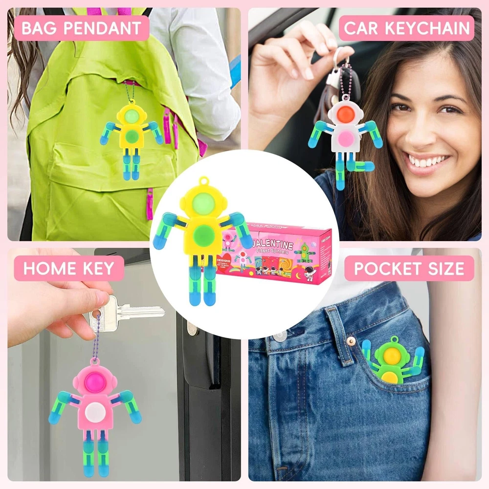 28 Pack Valentine's Day Gifts for Kids – Astronaut Finger Spinners with Cards for School Exchanges, Classroom Activities, Game Prizes, and Party Favors for Boys and Girls Product Details Product Dimensions: 3.43 x 2.76 x 0.39 inches Item Weight: 1.68 pounds Country of Origin: China Manufacturer recommended age: 3 years and up Manufacturer: SHANTOU CITY CHENGHAI DISTRICT QIANBO TOYS FACTORY Super Value Pack: Celebrate Valentines Day with our Astronaut-Shaped Finger Spinner Set! Includes 28 Finger Spinner toys and matching Valentine's Day cards (4 unique card designs, 7 pieces per design). Each card features special greetings that align with the Valentine's theme, making it a thoughtful and fun gift. Multiple Ways to Play:Our astronaut-shaped fidget spinner POP toy offers a variety of fun ways to play! It can be used as a spinning toy, transformed into different shapes like a chain toy to spark creativity, and features pop-it bubbles that make satisfying sounds when pressed. Additionally, it has a glow-in-the-dark feature, making it even more exciting in low-light settings. It also doubles as a keychain, perfect for hanging on bags, keys, or other itemsboth practical and fun! Perfect Valentine's Gift:These finger spinners make excellent gifts for school classroom exchanges, Valentine's Day parties, or as heartfelt tokens for friends and family. Each card includes space to write personalized messages. Attach the spinner toy to the card using glue for a creative, adorable gift everyone will love. Smooth Spinning Experience:Equipped with high-quality bearings, these spinners offer smooth and effortless rotation. Designed with rounded corners to ensure safety, they are perfectly sized for kids' hands, making them enjoyable and easy to use. Safe & Non-Toxic Materials:Safety-tested and free from unpleasant odors, these finger spinners are made with non-toxic materials, ensuring a safe and delightful Valentine's Day experience for kids. Give your children a gift theyll cherish with peace of mind.