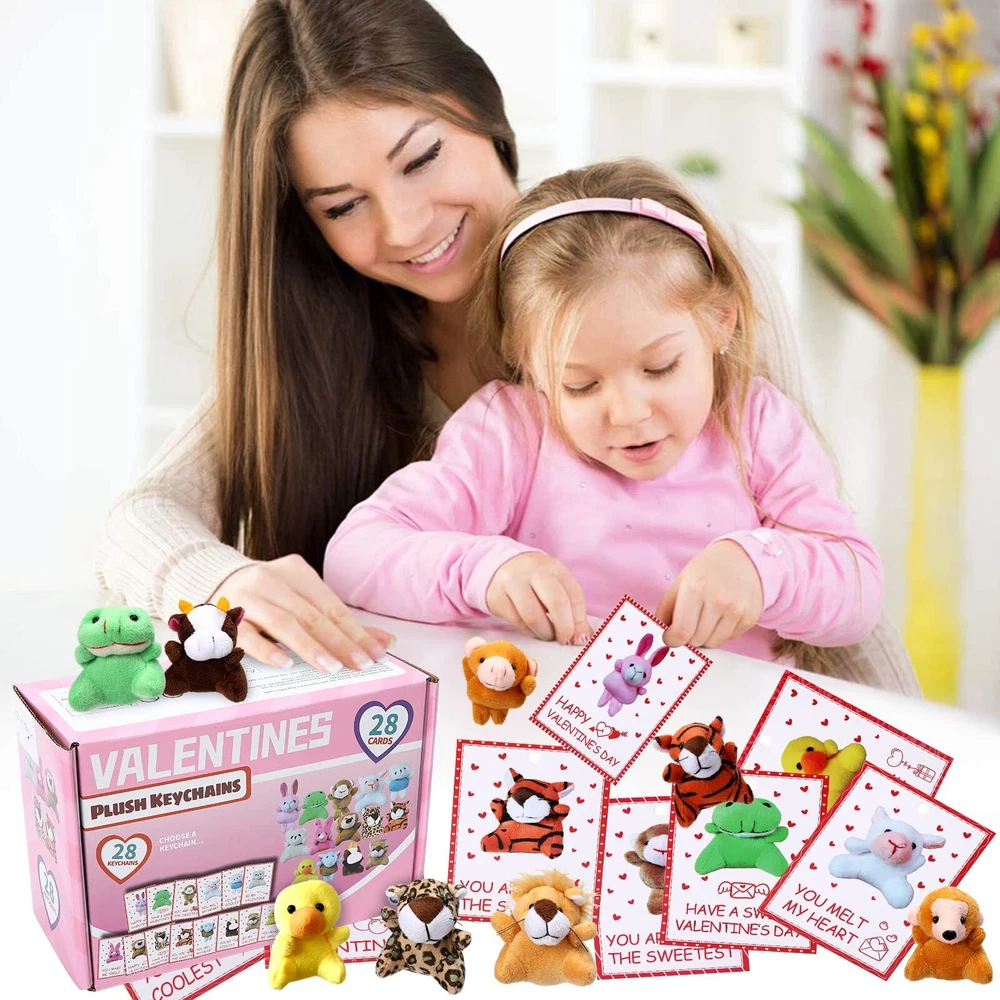 💕What You Get💕: You will receive 28 pieces of animal plush ornament and 28 pieces of Valentine's Day love cards. Each card and animal plush pendant are corresponding. Large quantity can satisfy your gift exchange needs and they can also be shared with your friend and classmates as Valentine's Day party supplies. 💕Own Zoo with Assorted Cute Animal Plush Toys💕: Our 28pcs animal plush pendant include 14 kinds of animals:Tiger, Duck, Lion, Rabbit, Bear, Mouse, Cow, Hippo, Panda, Dog, Frog, Leopard, Goat and Elephant. Each size is about 6.5 cm/ 3 inches (without rope). Your kids can learn 14 different kinds of animals and have their own zoo! 💕Soft Feel💕: High quality soft velvet plush make a supple feel for kids. It is very delicate and soft, plump, vivid and safe for kids to touch. Exquisite Embroidering and sewing technology makes the detail more in place, also filled with high-quality PP cotton. 💕Widely Used💕: The Valentine's Day card is made of coated paper, with clear printing, thick and not easy to break. Each of the little animals comes with have a small rope ensure you to clip or hang by interests. You can hang these mini plush toys on the keys, pencil case, backpack, cars, and anywhere you like. Good prize box toys for classroom and small toys for the claw toy grabber machine. 💕Perfect Gift💕: Plush Valentine's Day animal plush toy pendant with gifts cards are suitable for Valentine's Day party supplies, party decorations, party gift bag filler, Valentine's Day school teacher gifts for students, classroom exchange gifts, kindergarten graduation gifts, treasure box prizes for classroom, animal learning toy, preschool gift giveaways, carnival prizes, safary party supplies, grab bags and keychain ornaments.