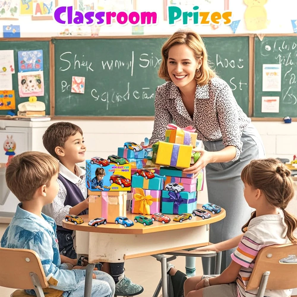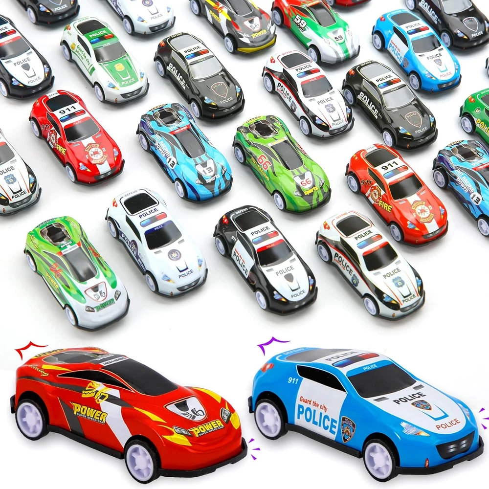 Mini Pull Back Cars Toys Set- This toy car set includes 28 racing toys in various colors and patterns, with a large quantity to share with children and friends. The size is about 2.75 inches, suitable for holding and playing. These mini cars are very portable and can be placed in pockets or bags as perfect travel toys, allowing children to play with them anytime, anywhere. Perfect Party Favors for Kids 4-8- this is bulk children's party toy that can be used as a Christmas party favors, birthday gift, mini car collection, goodie bag stuffers, pinata stuffers, giveaway, and more. Treasure Box Toys for Classroom- These small toys can serve as classroom rewards for teachers and prize box toys for kids classroom, suitable for classroom party, school holiday activities, etc. Stocking Stuffers for Teens Kids- These mini car toys are small and can be placed in Christmas stockings as a surprise, making them the perfect Christmas gift for girls, boys, women, and men. Easy to Play- Pull back the car, no battery required, just pull back the car's tires and the car will move. Children can also play easily and have fun. The metal body bottom of the car is made of high-quality ABS plastic,, safe reliable, bright and colorful, with smooth and round edges. Product Description