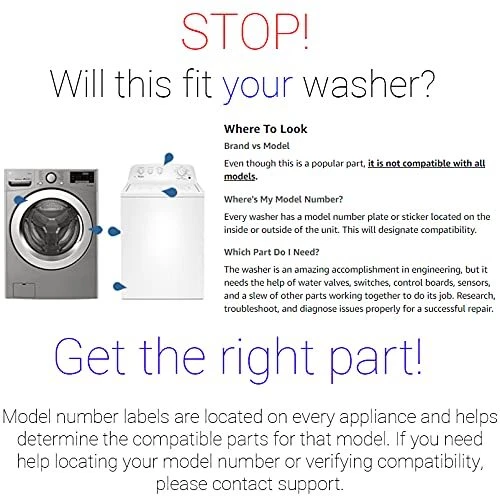This is a Washing Machine Drain Pump & Filter Assembly. Please see Model Number fitment information at the bottom of this page before placing your order for this part. Alternate part numbers include AP3953640, 285998, 8181684, 8182819, 8182821, AH1485610, EA1485610, PS1485610. This part is not designed for a top load washing machine. 120V | 60Hz | 0.70W | Includes grommets and other hardware for installation | A multimeter may be required to properly diagnose your machine | Fits model specific front load washers It is important to disconnect your washing machine from the power and water supply before servicing. You will want to put down a towel for any residual water in the drain hoses. replacement parts are compatible with Major Brands, but you should always verify fitment with your specific model. In case you have any trouble finding your model number we have included a helpful video in the product gallery, as well as information in the description below. SD products come in packaging.