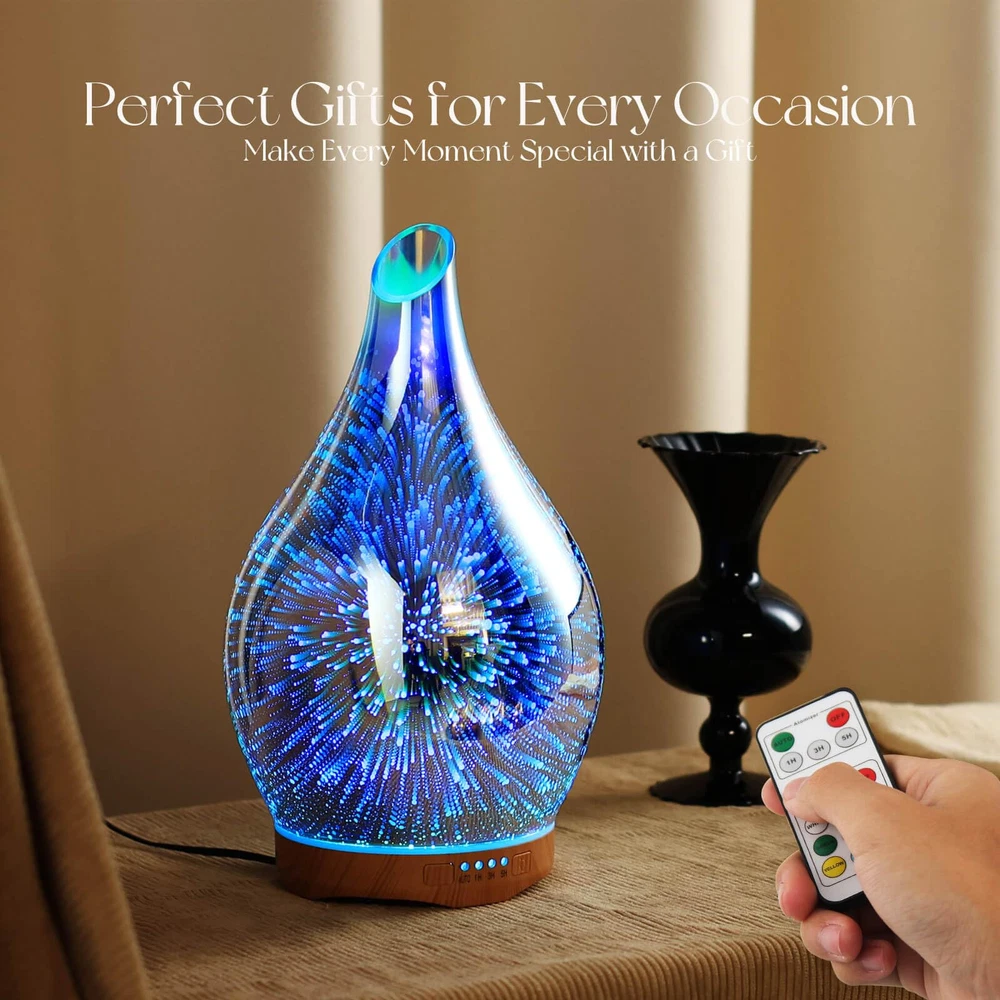★REMOTE CONTROL - You could be easily change the light color and mist when the oil diffuser is away from your bed.The remote's max reading range is 65ft. ★MESMERIZING AND RELAXING - The aromatherapy diffuser helps to enhance mood by offering a restful and purified space, as well as to maintain physical health. ★FOUR TIMER SETTINGS, LASTS ON 7 HOURS - You can set the timer by pressing the left button for auto,1 hour,3 hours or 5 hours.The 280ml essential oil diffuser lasts on 7 hours and has a good output of mist. Fits room not larger than 20*20(ft). ★WATERLESS AUTO-OFF - As a safe waterless auto-off design that prevents it from overheating when runs out of water,which assures safety for you and your family. Perfect to set and go to sleep without worry. ★SURPRISING WEDDING GIFT - It is good choice to use this lovely diffuser as gifts to your friends and families, lovers.