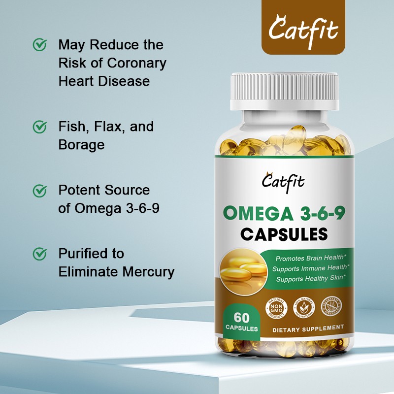 Description: Brand: Catfit Directions: Take 1 capsule once a day after meals Not applicable to: children, pregnant and lactating women, menstrual women, people with bleeding tendencies, and patients with hemorrhagic diseases. Product includes: 1 * 60pcs Fish Oil Capsules [Lowering Cholesterol] If the cholesterol in the body is too high, it can cause a stroke. It can lower cholesterol in the blood, which can prevent stroke, so it can prevent some cardiovascular and cerebrovascular diseases. "Brain Strengthening and Intelligence Enhancement" This product contains unsaturated fatty acids, which are important for the formation and development of brain cells, so it can maintain normal operation of brain cells and enhance memory. [Regulating Blood Lipids] If there is a high level of blood lipids or cardiovascular and cerebrovascular diseases, they can be taken appropriately, with good results. [Protecting the retina] can not only delay visual deterioration, but also prevent night blindness Supplement Facts Serving Size 2Vegetarian Softgels servings Per Container 30 Amount Per Serving %Daily Value Calories 20 3%* Total Fat 2 g Monounsaturated Fat 1 g Polyunsaturated Fat 0.5g Vegetarian Omega Blend of 2000 mg Flaxseed Oil,Olive Oil,Borage Oil, Pomegranate Oil,and Sacha Inchi Oil Omega-3 Fatty Acids 500 mg ALA(Alpha-Linolenic Acid) 500mg Omega-6 Fatty Acids 180 mg LA(Linoleic Acid) 170 mg GLA(Gamma-Linolenic Acid) 10 mg Omega-9 Fatty Acids 680 mg Oleic Acid 680 mg **Percent Daily Values are based on a 2,000 calorie diet.***Daily Value not established. Notes: These statements have not been evaluated by the Food and Drug Administration. This product is not intended to diagnose, treat, cure or prevent any disease. Contact Us & Feedback Your feedback is very important to us. We will leave positive feedback for you as soon as payment is received and hope you will take a moment to do the same for us. If u are satisfied with the item, please be kind to leave us positive feedback and a good rating. If you are not satisfied with the item or you have not received your parcel in the estimated time, we sincerely request from you contact us through the "My Message" section Or "Ask Seller Questions" BEFORE taking critical action. We will try our best to solve the problems to make our customers satisfied. All emails will be cos within 2 business day. If you do not receive our reply, please kindly re-sent your emails and we will reply to you ASAP. Payment The only acceptable payment methods are Payoneer, Credit Debit card & Paypal. Before your payments, please make sure you have a valid/active account. Our shipping services are valid only for verified eBay addresses. Therefore, please make sure to verify your eBay address. Moreover, your verified eBay address and the Paypal registered addresses are should be the same. Shipping We will ship the product about 2-3 days on confirmation of payment. The shipping method is Standard Registered Parcel Post. It includes 100% free shipping for most of our products. Nevertheless, this free shipping method might be changed for heavyweight items because of the huge amount of shipping cost. Returns 100% Satisfaction Guaranteed. We accept product returns within 30 business days from the delivery of the item. If you are not satisfied with the item or its condition, please feel free to contact us before taking action. We will try to solve any dispute and try our best to make our customers fully satisfied.