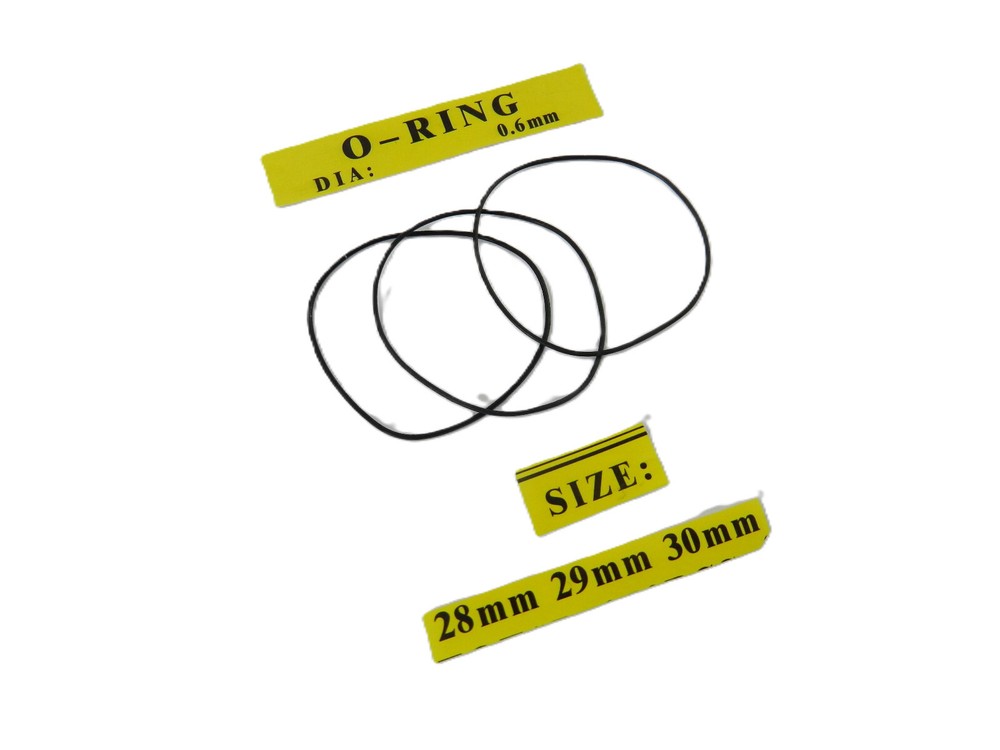 Rubber Watch Case Back O Ring Round Gasket 28mm-29mm-30mm Thick 0.6mm Color: BLACK Thickness: 0.6mm Materials: RUBBER Each packet includes 3 o-rings ( 28mm-29mm-30mm Thick 0.6mm )