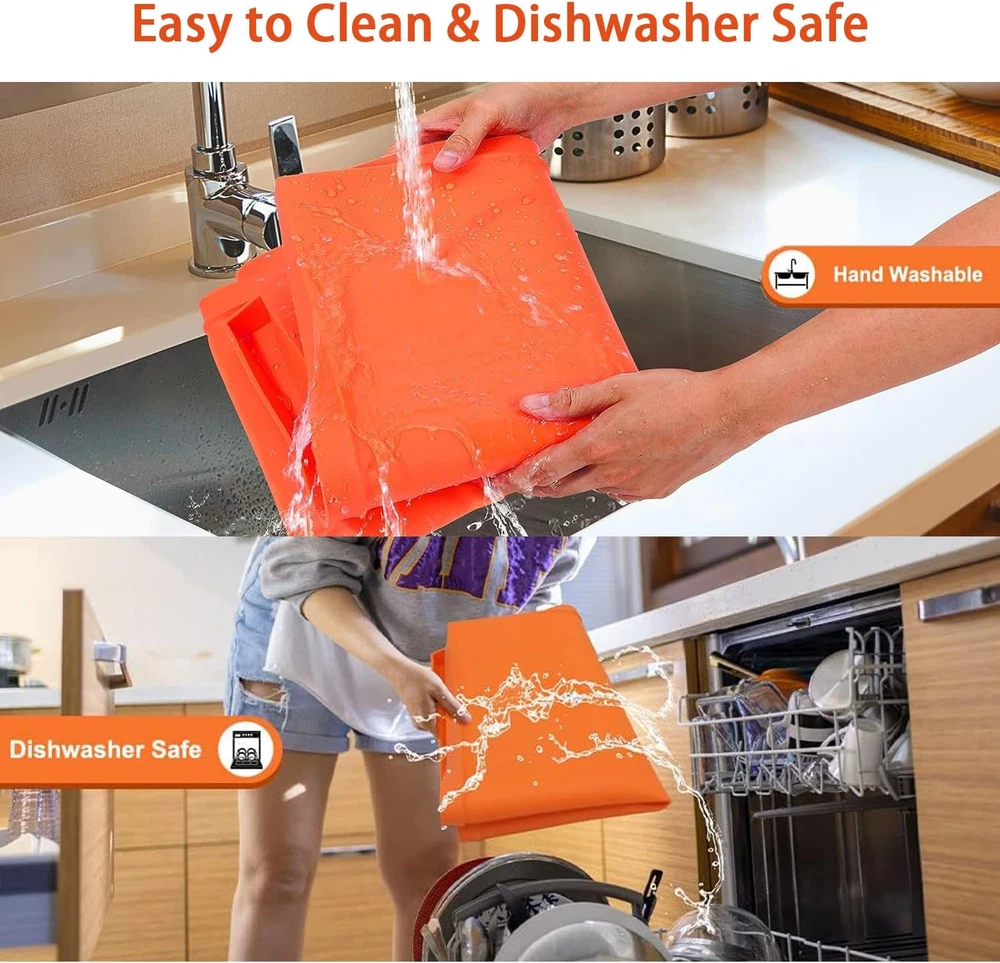 Grill Mat L: 28.82", W: 17.91", H:0.96". Our grill mats are designed to fit your 28" Blackstone griddle, it fits perfectly without any trimming to ensure it won't wobble or slip, we also supply 3 pieces of high quality sponge cloths to help you clean your grill or grill mats before and after use without damaging any of your equipment. Our Heavy Duty Blackstone Grill Mat is made of 100% grade silicone, heavy duty thickened design, soft and flexible, the silicone is thick, easy to clean, foldable for storage, reusable, heat resistant also ensures safety and , it is the safest material to protect the surface of the Blackstone Grill. The Silicone Grill Mat is a perfect fit for the Blackstone Grill. It provides protection against rodents, insects, dirt and rust. The high-sided design of the grill also helps to trap moisture and debris, protecting it from moisture and oxygen. This prolongs the life of the pan and keeps it in pristine condition. Keep your griddle looking new with our silicone grill mat and protect your investment all year round. Enjoy healthy and delicious grilled with friends and family! If you are not satisfied with the tin floor mats or have any quality problems, you can find us through and we will provide you with a satisfactory solution. SILICONE GRIDDLE MAT FOR BLACKSTONE 36" 28" 22" 17” MODEL GRIDDLE GRIDDLE BUDDY MAT BLACKSTONE The Gearmatte Silicone Griddle Mat is an excellent grill accessory that adds convenience and effectiveness to your outdoor griddle cooking. BLACKSTONE GRIDDLE MAT SILICONE This practical tool substantially cuts down on the time needed for both cleaning up and preparing your griddle, as it ensures the griddle surface remains clean and from rust when not in use. BLACKSTONE SILICONE GRIDDLE COVER Gearmatte Griddle Buddy Mat has evolved from its original built-in design to now provide full coverage, effectively extending the lifespan of your BBQ and shielding it from adverse weather conditions. This, in turn, reduces the need for you to incur costs for griddle replacements. Product Feature: Universal Size Easy to Clean 100% Silicone Non-stick,Heavy Duty and Reusable Design Full Protection to Griddle All the Year. PRODUCT Details: 100% Silicone Fit for Griddle 28in Packing List: Grill Mat Silicone x 1pcs Tips: Our Griddle Silicone MAT SIZE: 28.82x17.91x1in(L*W*H). Great for 28" Blackstone griddles and similar model