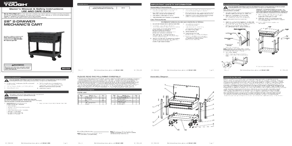 You may also like Fishing Storage Toolbox W/ 4 Drawers 19 Compartments Camping Organizer Outdoor 36.42 USD 39.16 USD Free shipping 7% off Durable Waterproof Locking Stacking Utility Box Tool Storage Organizer New 9.81 USD 10.55 USD Free shipping 7% off Introducing the 28-inch Hyper Tough Steel Mechanics Tool Cart, your ultimate companion for heavy-duty storage and mobility in the workshop. This rugged yet easy-to-assemble cart boasts an impressive capacity of up to 500 pounds, ensuring you can store and transport a substantial array of tools and supplies with ease. Its design is engineered for durability, offering resistance to rust, dents, chipping, and peeling, ensuring it remains a staple in your workspace for years to come. Equipped with a large push-bar side handle, maneuvering this tool cart is a breeze, aided further by its two swiveling and two locking/swiveling 5-inch diameter caster wheels. These features provide effortless mobility, allowing you to position the cart precisely where you need it. The two heavy-duty drawers come with fully extendable, ball-bearing slides, offering smooth access to your tools. The large bottom tray is perfect for bulkier items, while the top compartment provides versatile storage for tools, equipment, or general use. To enhance organization and tool safety, the cart includes non-slip drawer liners that keep your tools securely in place during movement. The durable powder-coated finish not only adds a sleek, professional look but also provides resistance against rust, corrosion, and chipping. With the 28-inch Hyper Tough Steel Mechanics Tool Cart, experience a seamless blend of strength, functionality, and durability, making it an indispensable asset in any professional or home garage. High Load Capacity : Can hold up to 500 pounds of tools and supplies Durable Construction : Resistant to rust, dents, chipping, and peeling Smooth Drawer Access : Two heavy-duty drawers with fully extendable, ball-bearing slides Versatile Storage : Large bottom tray for bulky items and a top compartment for additional storage Easy Maneuverability : Large push-bar side handle and 5-inch diameter caster wheels (two swiveling, two locking/swiveling) Protective Non-Slip Liners : Includes non-slip drawer liners to keep tools in place during movement Quick and Easy Assembly : Features a design that allows for quick and straightforward assembly, making it ready to use in no time Security Lock : Includes a built-in lock for securing the top compartment and drawers, ensuring your tools are safe and protected Ergonomic Design : The height and layout of the cart are designed to reduce strain and improve accessibility while working For additional storage solutions also check out the Hyper Tough Hyper Stack Foldable Utility Cart, Hyper Tough Hyper Stack 3-Tier Heavy Duty Utility Cart Rib 15X6.00-6 4-Ply Rated Lawn and Garden Tire Durable 27.3 USD 29.36 USD Free shipping 7% off Lawn Mower Blade Removal Tool Rigid Metal ConstructionEasy-Turn Clamp Handle 7.78 USD 8.37 USD Free shipping 7% off Kansas City BBQ Dry Rub Seasoning 14.5oz Gluten Free Flavors Beef Pork Chicken 9.64 USD 10.37 USD Free shipping 7% off 1.5 Gallon 2 Peak HP Poly Wet/Dry Shop Vacuum Cleaner Portable Home Carpet Vac 37.32 USD 40.13 USD Free shipping 7% off Penny Candy Glass Jar with Lid Cookie Jar 1 Gallon Food Storage Jar for Snacks 9.97 USD 10.72 USD Free shipping 7% off Pole Saw Attachment Universal Automatic Lubrication for Cutting Limbs and Brush 45.0 USD 48.39 USD Free shipping 7% off Extra Strength Vitamin D3 Softgels 125 mcg 5000 IU Bone Immune Health 250 Count 9.81 USD 10.55 USD Free shipping 7% off NEW Wide Grip Kettlebell Exercise Fitness Weight Set 3PC 10lb 15lb 20lb 3 Pieces 26.39 USD 28.38 USD Free shipping 7% off 30lb Whole Grain Layer Chicken Feed Superfood Nutrition Egg Production NEW 25.17 USD 27.06 USD Free shipping 7% off Magnesium Sleep Support Bone Joint Health Supplement Vegetarian Capsules 60 Ct 8.46 USD 9.1 USD Free shipping 7% off Full Motion TV Wall Mount 10-50 Inch TVs W/ Tilt Swivel HDMI Cable UL Certified 7.11 USD 7.64 USD Free shipping 7% off Metal Plant Stand 9in Tall Durable Heavy Duty Design Indoor Outdoor Use 9.96 USD 10.71 USD Free shipping 7% off
