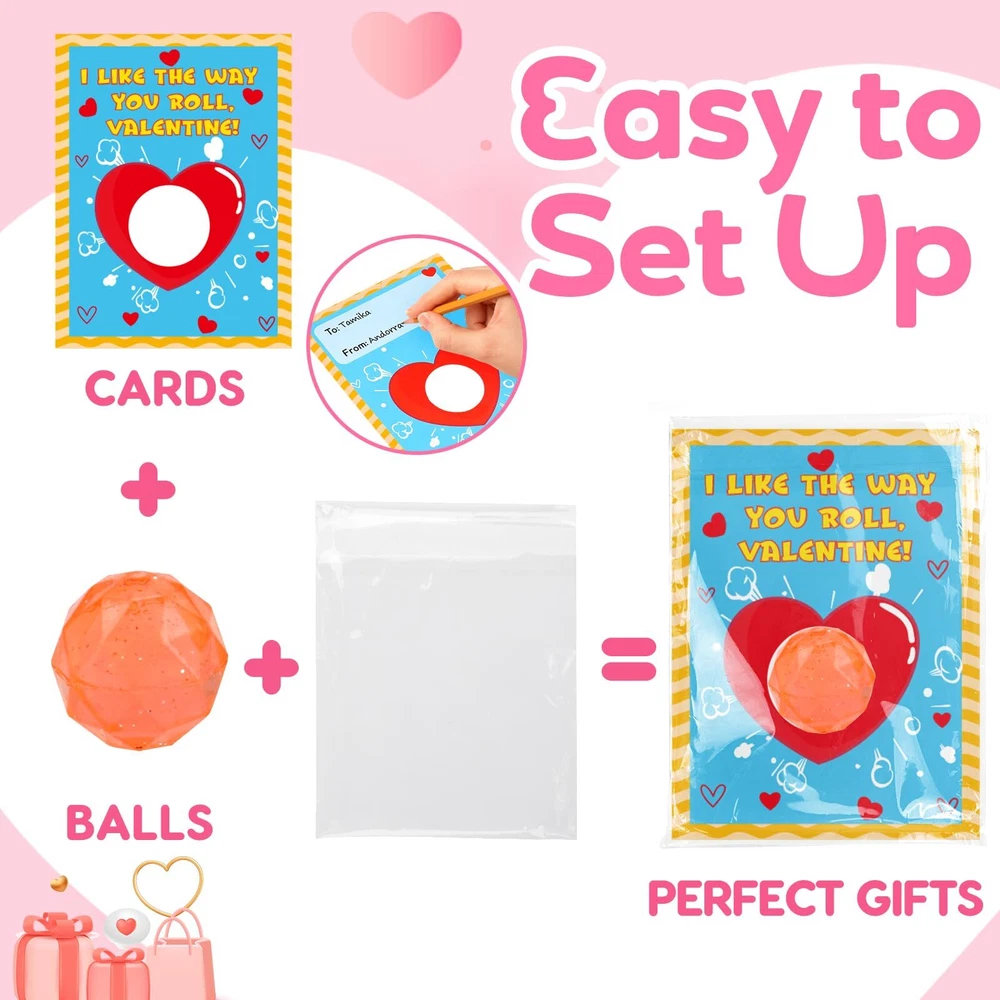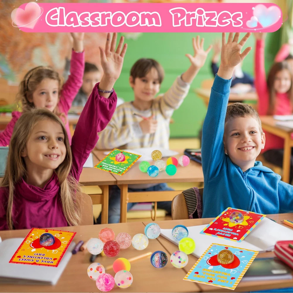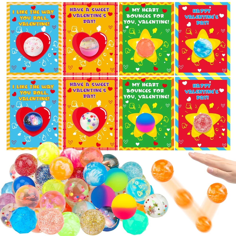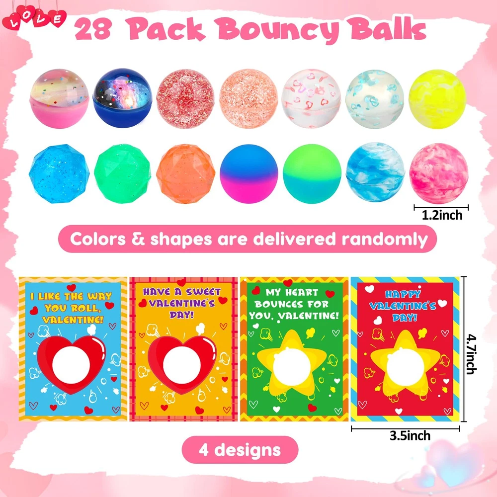 【Perfect Valentines Day Gifts for Kids】Our toddler Valentines day gifts include 28pcs bouncy balls, 28pcs valentine cards and 28pcs self-adhesive clear bag. Highly playable bouncy balls are good choices as Valentine's Day gifts for kids, enriching the festive atmosphere. Great Valentines day cards for kids school! 【Funny Bouncy Balls for Kids】More than 4 styles of bouncy balls (colors and shapes are randomly) are perfect for different gift recipients, such as kids, classmates, and friends. The high bouncing bouncy balls can be great choice as party favors for kids 4-8 and classroom prizes. Perfect size for goodie bag stuffers, bulk gifts for kids, treasure box toys for classroom. 【Valentines Cards for Kids Classroom】Our Valentine's Day cards for toddlers are thick cards with four different designs. Kids can share their love by filling in the “To” and “From” on the back of the card and giving it to a friend as a Valentine's Day gift. Best Valentines day card for friends that bringing more fun on Valentine's Day! 【High Quality Valentines Gifts】 The bouncy balls bulk are waterproof and made of high quality rubber material. They can be bounced on most surfaces indoors and outdoors, encouraging the development of children's fine motor skills in a creative way. Great valentines day party suppliers, valentines day goodie bags stuffers, valentines day gifts cards for kids classroom. 【Ideal Kids Valentines Day Gifts for School】 These cool bounce balls valentines for kids are the best choice as gifts for Valentines. Perfect as kids party favors, valentines exchange cards, classroom prizes, school party supplies gifts, valentines treat bags, valentines boxes for kids, party favors for kids 3-5 4-8, goodie bags for birthday party.