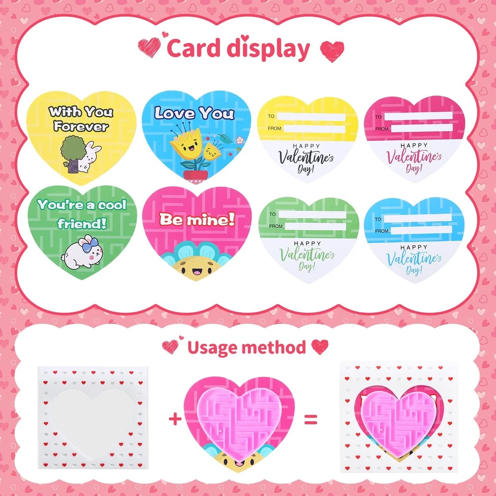 28Pcs Valentines Gifts for Kids, Novelty Heart Maze Puzzles With Valentines Cards for Kids Classroom, School Gifts Party Favors Carnival Prize Goodies Bag Fillers Pinata Stuffers Toys Product Details Color: Blue, Pink, Green, Yellow Material: Plastic Brand: DOBKDTUYS Unit Count: 1.0 Count Theme: heart Item dimensions L x W x H: 2 x 2 x 0.25 inches Occasion: Valentine's Day Manufacturer: yiwushihezhiweiwanjuchang UPC: 768484439890 Age Range (Description): Kid Product Dimensions: 2 x 2 x 0.25 inches Item Weight: 7.6 ounces Country of Origin: China Manufacturer recommended age: 13 years and up Cute Design: Heart shape; Maze Puzzle Toys; 4 bright colors- blue,pink, green,yellow High Quality: Thick ABS plastic, firm, smooth, work well, portable, colorful Package included: 28pcs heart cards with cute sayings, 28pcs heart maze puzzle toys. Cute Cards: 4 designs, 4 colors-blue,pink, green,yellow; Printed "Happy valentine's day!""Be mine!""Love you""You're a cool friend!""With you forever" Occasions: Cute cards with heart maze toys, perfect as kids school classroom prizes, gifts for kids, cards for kids classroom, classroom prizes, exchange gifts, love notes, carnival prizes, party favors, kids treats, class events, goodie bags stuffers, classroom gifts for students, treasure box, pinata fillers, birthday party giveaways and etc,.