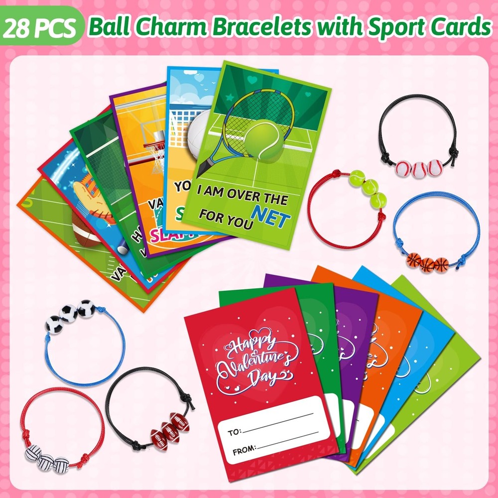 28 PCS Valentines Day Cards for Kids Adjustable Ball Charm Bracelets Toys Sports Valentines Party Favor Preschool Boys Ages 3-8 Classroom Exchange Valentine Day Gifts Football Basketball Bulk Prizes Product Details Color: Black, White, Green, Red Material: Plastic Brand: AugToy Theme: Sports, Love Item dimensions L x W x H: 1 x 1 x 1 inches Occasion: Valentine's Day Manufacturer: AugToy Age Range (Description): Kid Product Dimensions: 1 x 1 x 1 inches Item Weight: 8.1 ounces Country of Origin: China Manufacturer recommended age: 36 months - 15 years Bulk Sports Valentines Toys---The Valentines day cards for kids with bulk toys includes 6 types of bracelets for sports lovers, basketball, football, volleyball, tennis, soccer and baseball. Bulk charm bracelets party favors for boys girls suitable for multiple occasion, is a good choice for prizes box toys for kids classroom, Valentines day gifts, sport goodie bags, toddler valentines day cards exchanges and other good gift choices. Valentines Day Gift Cards---28PCS sport valentines cards for kids classroom with ball patterns, greeting cards are available in 6 designs with unique sentences on each card, matching with the mini ball charm bracelet to make the gifts more attractive. Kids can also express their care and love for their family and friends on the valentines cards, can as a valentines day exchange cards for kids or put it in preschool classroom treasure box. Making it the best valentines day gifts for kids. Adjustable Sports Charm Bracelets---Made of high quality and safe material, kids valentines bracelets are sturdy, the mini ball bead decorations are cute, simple and fashion. Designed with an adjustable rope buckle for easy lengthen or shorten, attached with eye-catching sport balls decorations which is very suitable for teens, adults and sport teams. Perfect for sport party favor, basketball valentines gifts, football valentines team decor, baseball valentines day cards, boys valentines cards. Perfect Exchange Gifts---Individually package, different styles of bracelets with corresponding patterned cards, valentines day cards and bulk toddler charm bracelets are a great combination for valentines and holiday gifts. Not only for sport valentines, balls party decorations and carnival prizes, but also can give those sports charm bracelets to someone who loves sports. It will be a super meaningful Valentines gifts for kids ages 3-5 4-8. Cool Sport Party Favors---It is the best sports themed party supplies for many sports such as tennis party favors, baseball valentines, basketball valentines cards, football valentines for kids, soccer valentines and volleyball goodie bag. It can be used in daily activities to add a sense of style. Kids sport charm bracelets for boys & girls are the ideal prizes for classroom, valentines for kids, sport pinata, class valentines day gifts, valentine's day cards or ball team activities.