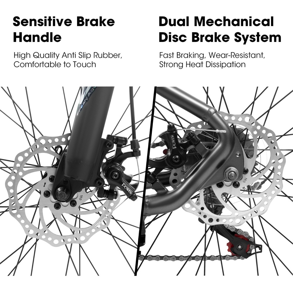 This bike is a game-changer! The lightweight aluminum frame makes it easy to handle, while the suspension fork smooths out rough trails. The 21-speed Shimano gears shift smoothly, and the disc brakes give reliable stopping power in any condition. Perfect for off-road adventures—durable, fast, and so much fun to ride!