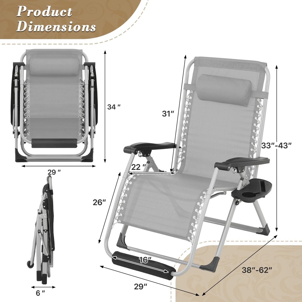 29 Inch Zero Gravity Adjustable Folding Lounge Camping Chair for Adults
