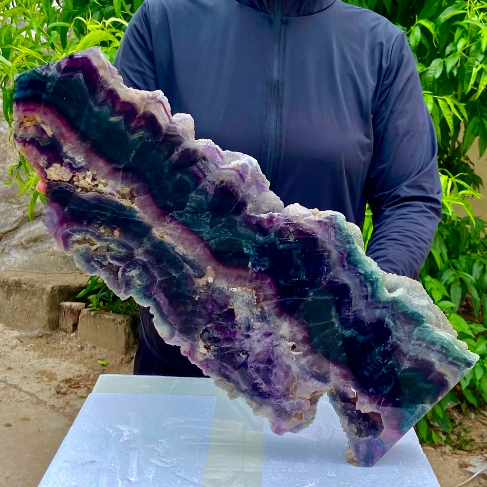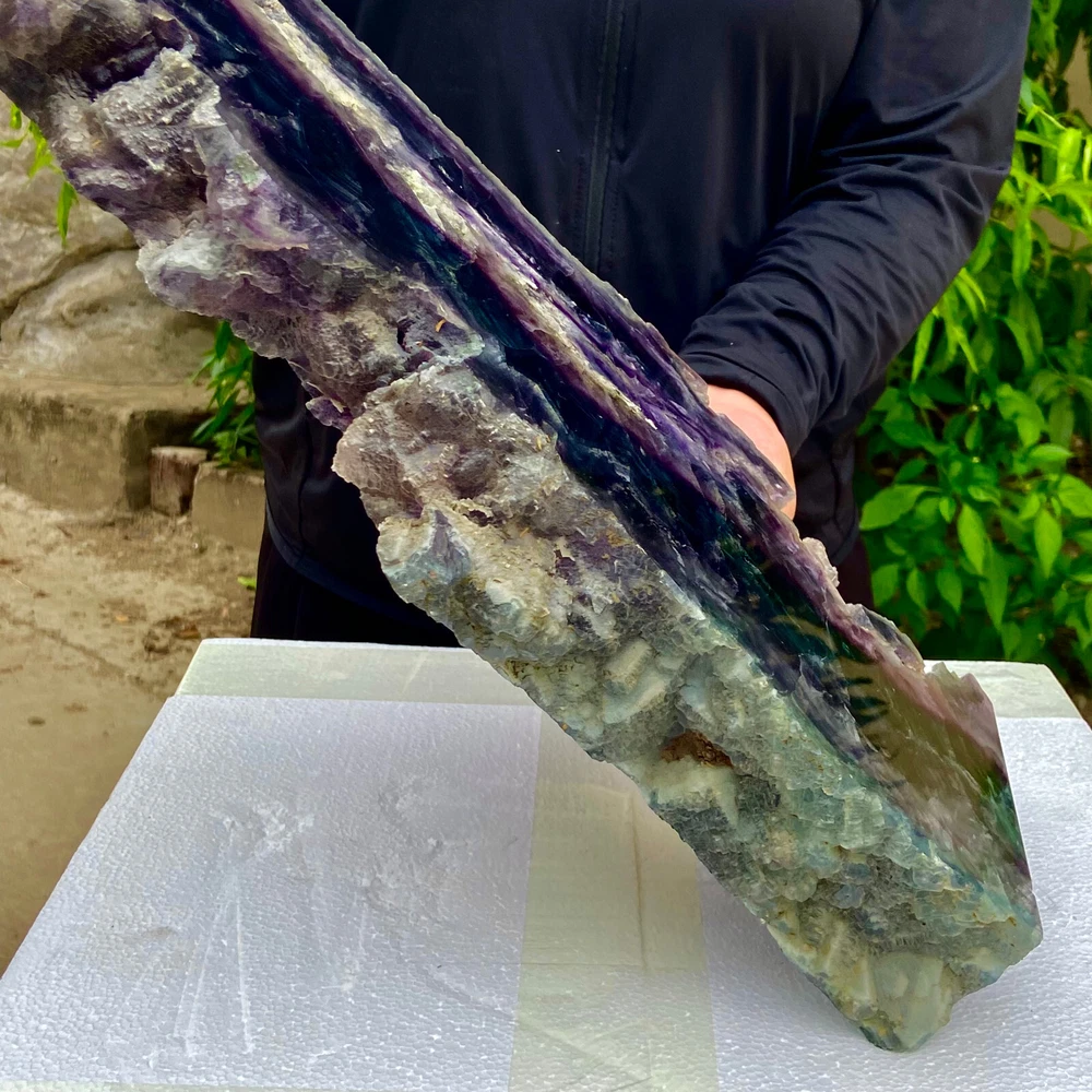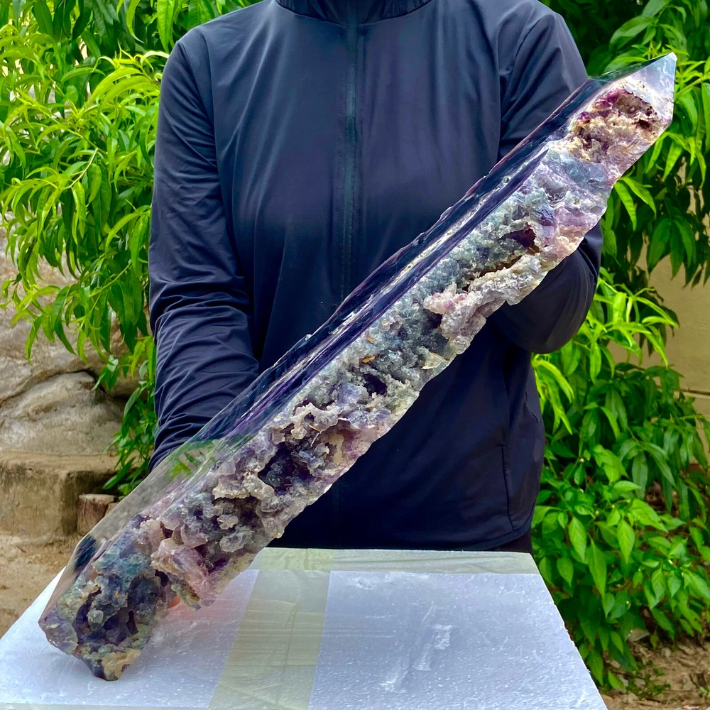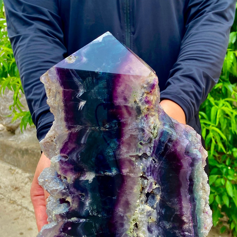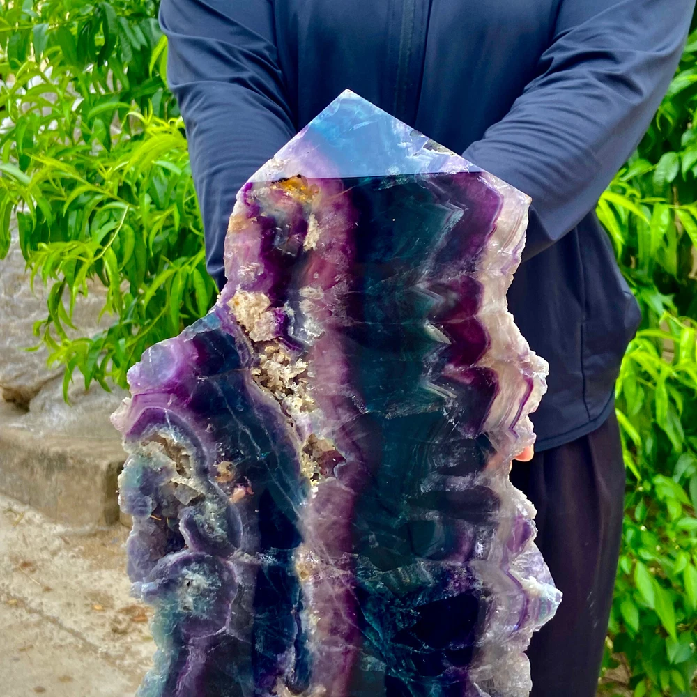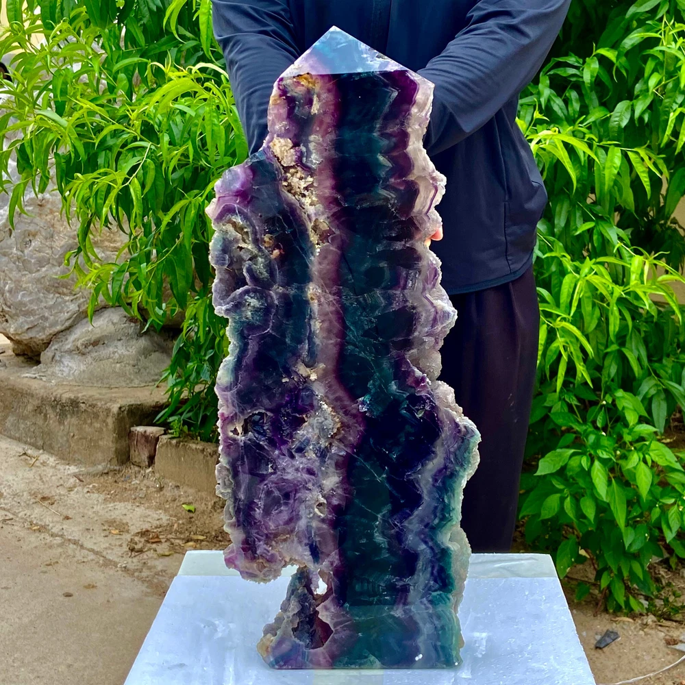 29.1LB Natural Rainbow Fluorite Obelisk Crystal Wand for Healing and Energy