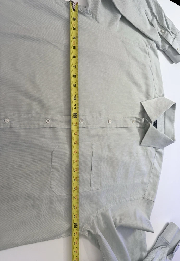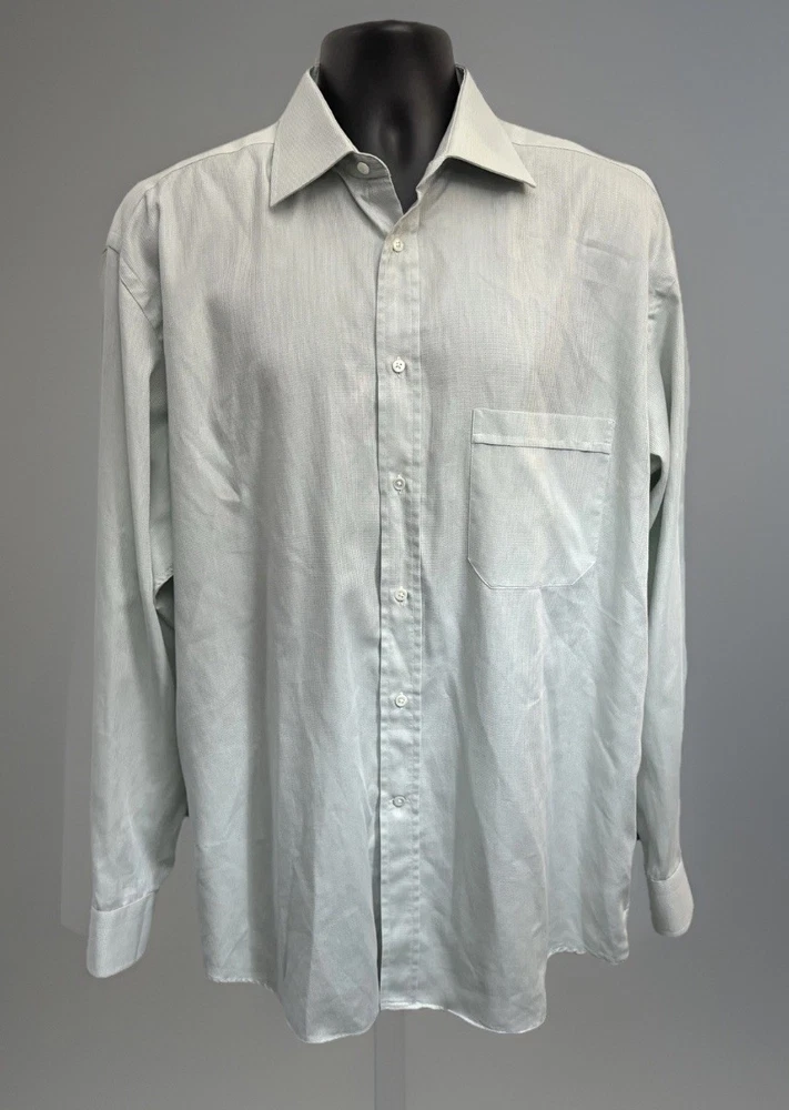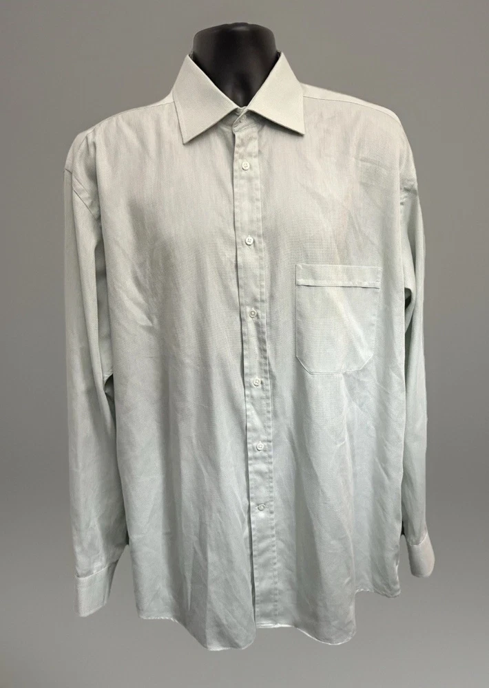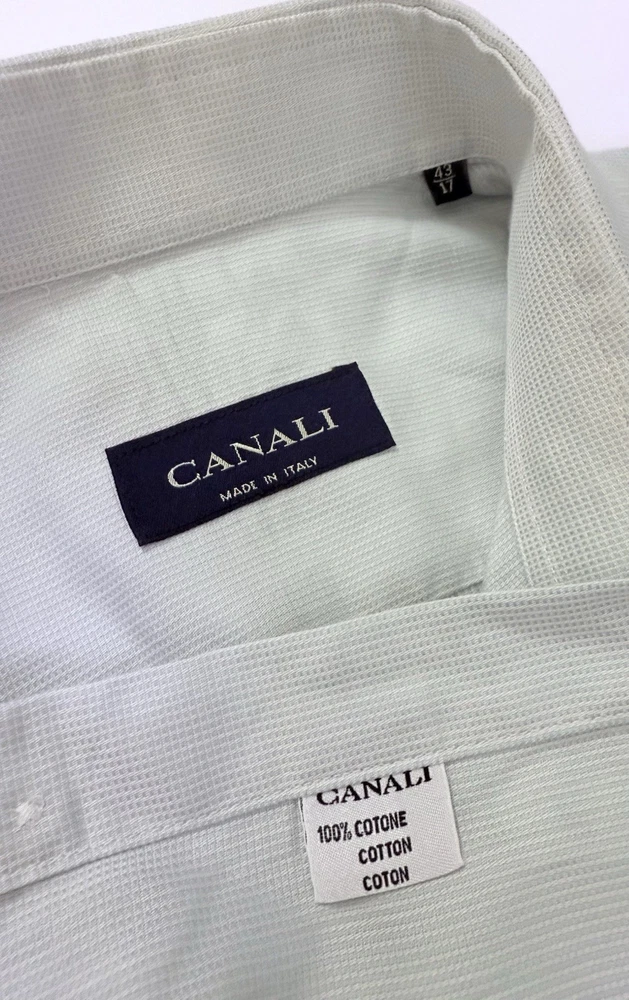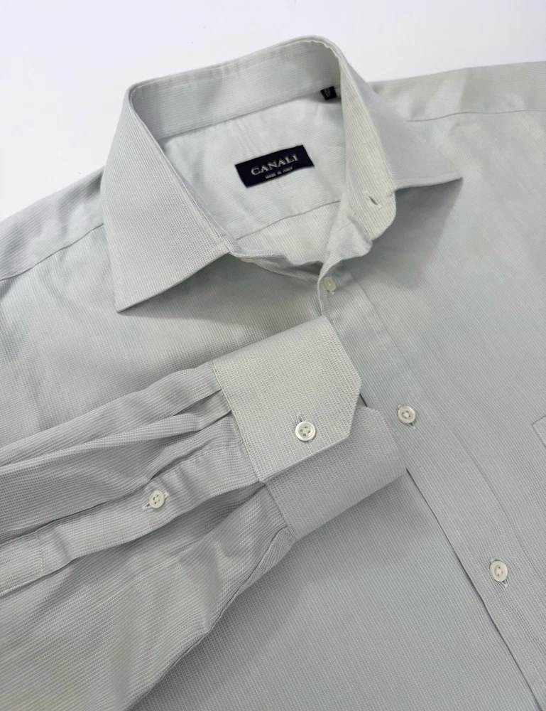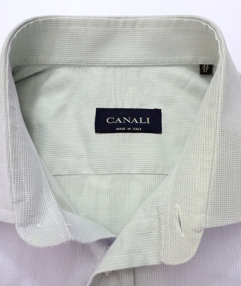 EUC. No signs of wear or flaw. LNWOT. Looks unworn or new. The product is a high-quality Canali dress shirt for men, made in Italy. It features a solid light green and hint of blue color with a textured weave, perfect for various occasions including formal events, workwear, and casual outings. With a spread collar, barrel cuff, and button closure, this shirt offers a classic and preppy look. The cotton material and machine washable fabric make it easy to care for and suitable for all seasons. With its designer Italian theme, this shirt is a versatile and stylish addition to any man's wardrobe. CANALI is a high end Italian brand known for its quality craftsmanship. Measurements: Armpit to armpit: 25” Shoulder to hem: 32” Curve hem FLAT FEE NEXT DAY SHIPPING WITHIN THE US