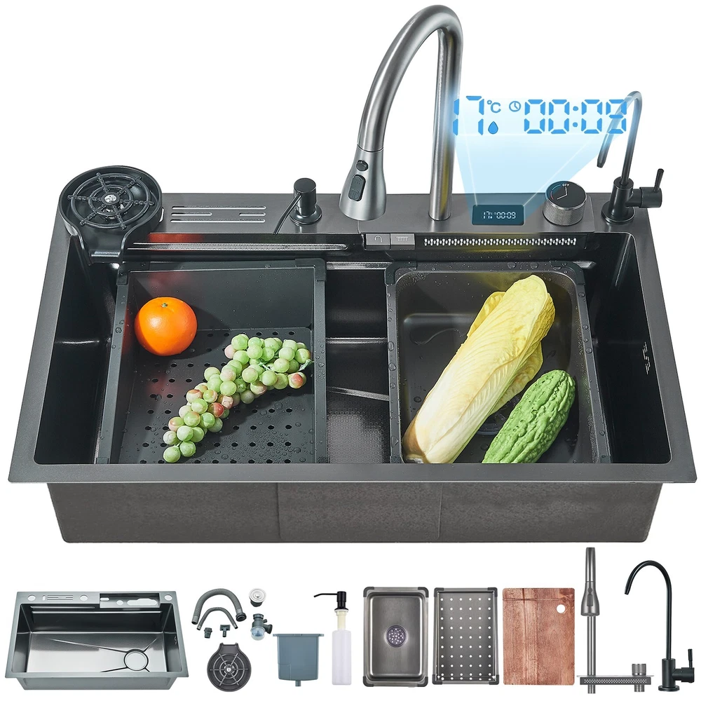 Store Categories Store Categories China Warehouse Shipment CN-Accessories CN-Basin Faucet CN-Bathtub Faucet CN-Kitchen Faucet CN-Shower Faucet CN-Shower Panel CN-Shower Set CN-Shower Head U.S. warehouse shipment Accessories Basin Faucet Bathtub Faucet Kitchen Faucet Shower Faucet Shower Head Shower Panel Shower Set Kitchen Faucet 2 UK warehouse shipment Accessories Basin Taps Bathtub Taps Kitchen Taps Shower Taps Shower Head Shower Panel Shower Set Shipment from German warehouse Other Product Certification Details Function: Kitchen sink with Kitchen Sink Faucet Feature: Integrated faucet Finish: Matte Gray Sink Length: 750 mm Sink width: 460 mm Sink height: 210 mm Faucet Total Height: 400 mm Spout Height: 190 mm Faucet Body Material: Stainless steel Faucet Spout Material: ABS Plastics Sink Material: 201 Stainless steel Shipment & conditions Payment Method Contact us Feedback Shipment & conditions Usually shipment can be arranged within 2working days after receiving payment. Each item can be shipped out if payment received before 17:00 each day. We usually ship via Fedex , UPS, USPS. We have warehouses in many locations in the United States, and will use the warehouse closest to you for shipment. We ship to the address in the order.Therefore, please make sure that the address you fill in when purchasing is correct. After the product ships, the estimated delivery time in the order is the best-case scenario. We cannot guarantee delivery within the estimated delivery time. Because logistics and transportation have great uncertainty. The buyer is responsible for returning the product if it is not a quality problem. Payment Method Paypal, Google Pay, VISA, AMEX, etc. Contact us Shipping damage has to be reported within 5 business days of which the product was delivered. If you have any questions, please be free to contact with us,we will answer your questions ASAP. We will answer your question via email, please check your email for the answers. Feedback I describe items as well as I can. If I have missed something, please let me know. Please e-mail me before leaving feedback if you are unhappy with your item, so we can work it out. International Buyers – Please Note: Import duties, taxes, and charges are not included in the item price or shipping cost. Urheberrecht©Xifumixertaps On Oct 18, 2024 at 00:51:29 PDT, seller added the following information: