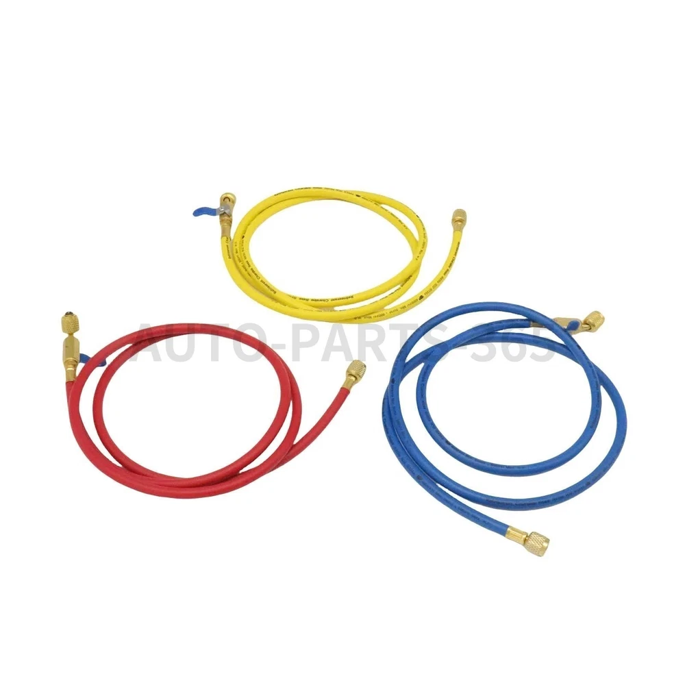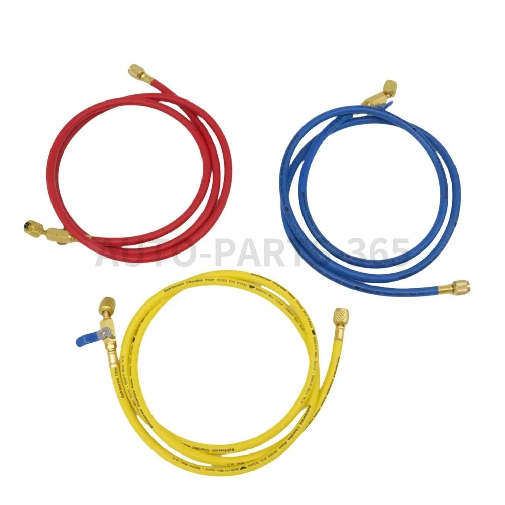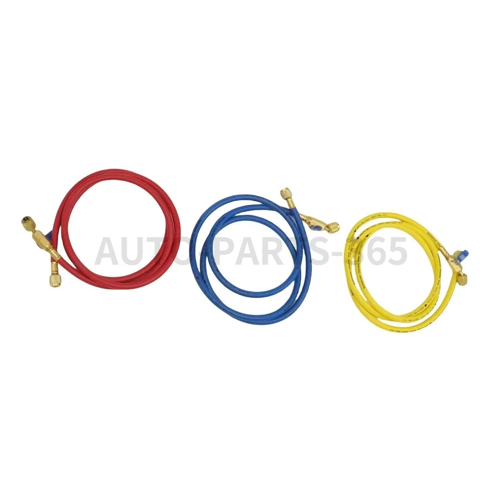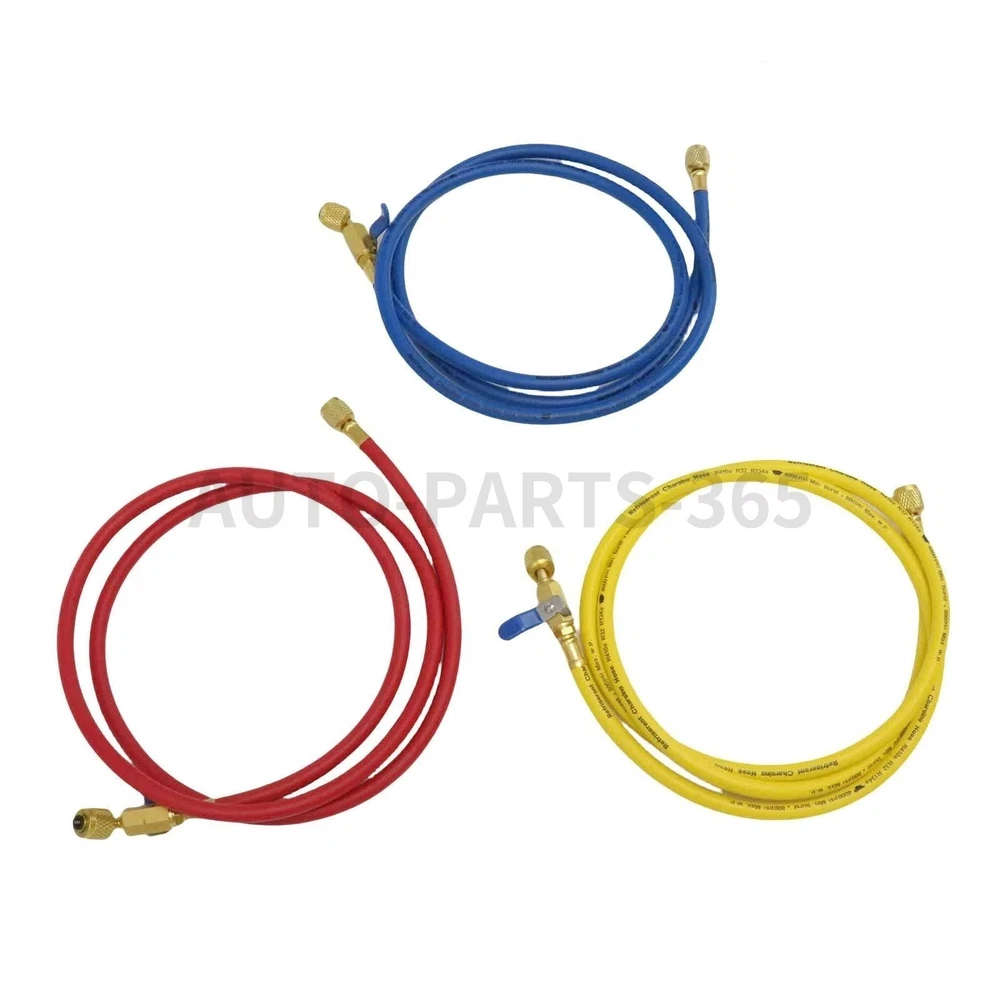 Product Details Material: Brass, Rubber Color: red blue yellow Item Weight: 2.3 Pounds Maximum Pressure: 4000 Pound per Square Inch Item Length: 72 Inches Specific Uses For Product: HVAC and A/C maintenance, Refrigerant charging Batteries Included?: No Batteries Required?: No Adaptation: 29986 hose recommended for R-410A, necessary tool for HVAC, car air conditioning (A/C) maintenance and adding coolant Professional Design: Compact, lightweight design is easy to install and use. Ball valve design with quarter turn valve handle switch for refrigerant control. it can be operated with one hand Product Details Material: Brass, Rubber Color: red blue yellow Item Weight: 2.3 Pounds Maximum Pressure: 4000 Pound per Square Inch Item Length: 72 Inches Specific Uses For Product: HVAC and A/C maintenance, Refrigerant charging Batteries Included?: No Batteries Required?: No Adaptation: 29986 hose recommended for R-410A, necessary tool for HVAC, car air conditioning (A/C) maintenance and adding coolant Professional Design: Compact, lightweight design is easy to install and use. Ball valve design with quarter turn valve handle switch for refrigerant control. it can be operated with one hand Function: Full flow valves using standard gaskets and valve openers. Metal handle on the end of the hose is suitable for sealing the area and traps all gas High-quality Material: Made of brass and high-quality rubber, with strong airtightness and high safety. High-quality HVAC instrument hose for durability and reliability; Diaphragm valve with rotary ball valve seal for more reliable sealing and reduced wear Specifications: Replaces part number: 29986, 72" long 1/4" hose, blue hose*1, red hose*1, yellow hose*1, three total, hose with compact ball valve end. Minimum burst pressure is 4000 psi (276 bar) and maximum working pressure is 800 psi (55 bar). Operating temperature is -20F to 180F (-28.8°C to 82.2°C). Minimum Bend Radius: 6" (152mm) Notice: A. Manual measurement, please allow slight errors in size. B. Due to different screen display, the color may be slightly different Buyers must read: please confirm whether the part number or photo of the product matches your original before purchasing