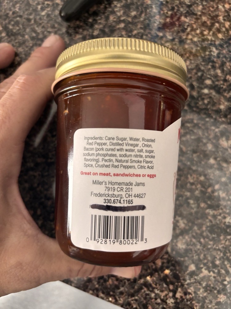 Amish Bacon Jam from Mrs. Miller's is a spicy chili jam made with a unique blend of homemade ingredients from Amish country. This 9 oz jam is perfect for adding a sweet and spicy kick to your favorite dishes. Made in the United States, this Amish-style jam is sure to elevate your culinary creations with its rich and flavorful taste.