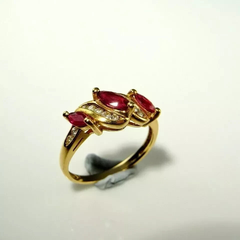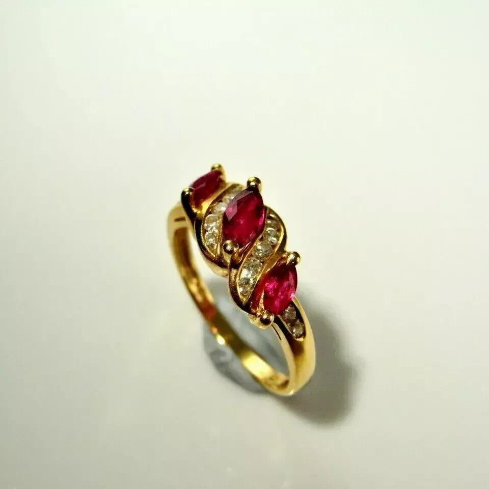 1CT Lab-Created Red Ruby Diamond Women's Ring in 14K Gold Plated Band