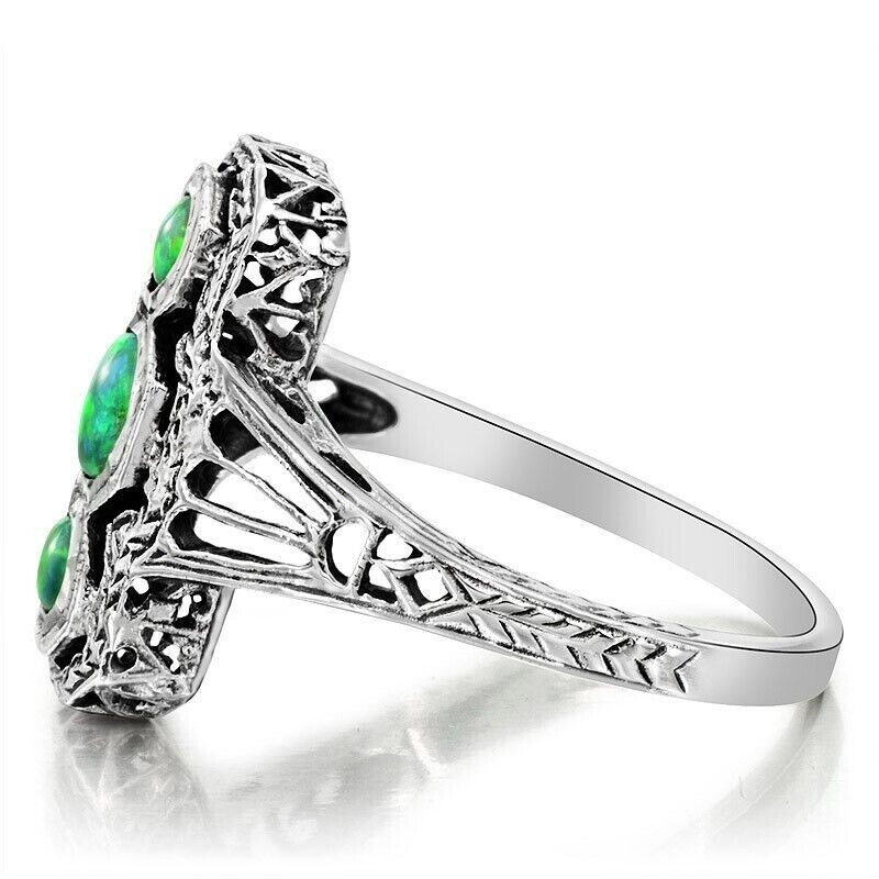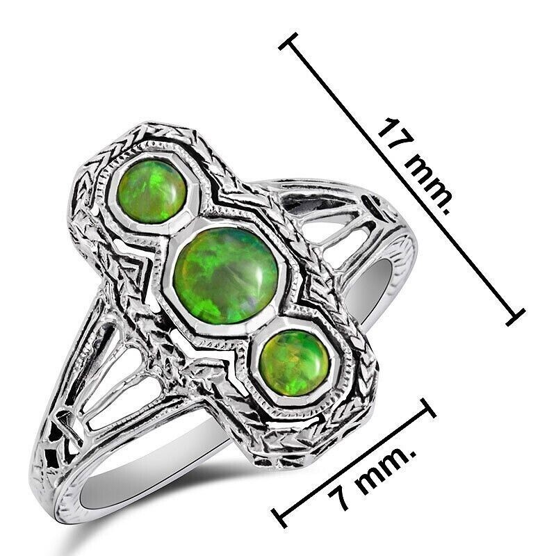 Menu Store FAQ Payment Shipping returns Feedback CONTACT US SHOP BY RING SIZE 4 4.5 5 5.5 6 6.5 7 7.5 8 8.5 9 9.5 10 10.5 11 11.5 All STORE CATEGORIES 99 cent daily deals Auctions Ending Soon New Arrivals Buy it now Rings Pendants Earrings Necklace Bangles & Bracelets POPULAR STONES Aquamarine Ruby Sapphire Pink Sapphire Emerald Topaz Opal Pearl Amethyst Blue Topaz Kunzite Herkimer Diamond Hand Carved Fossils Citrine Garnet Alexandrite Natural Rough Two-Tone Sterling Silver Store Newsletter Add old-english-silver to your Favorites and receive our e-mail newsletters about new items and special promotions. General Interest Sign Up Gemstone : NATURAL GREEN FIRE OPAL Metal : Genuine 925 Solid Sterling Silver Total Carat Wt : 2 Total Gram Wt : 4 Dimensions : 17 mm Long & 7 mm Wide. Ring Sz : 6 Shipping & Handling